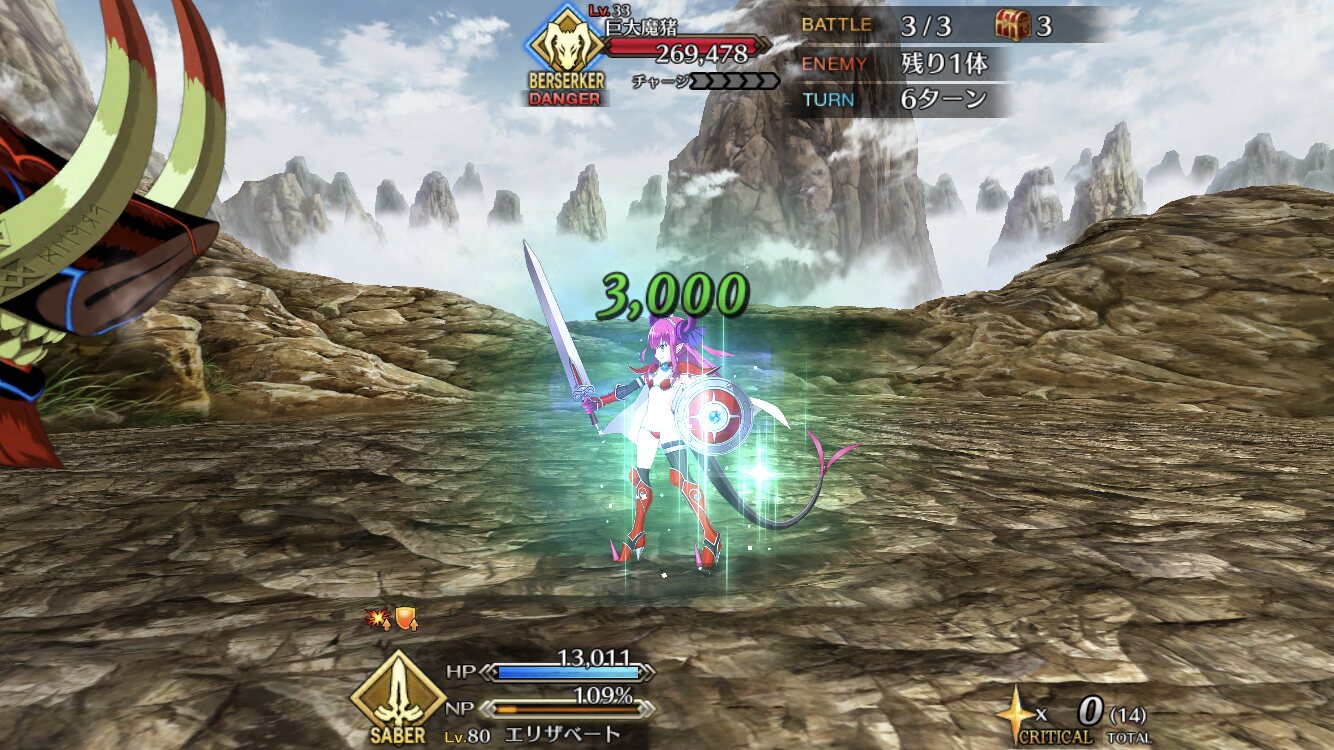 (HP満タンで回復が出たエリちゃんですが、この後削りきれずにカウンターをもらってHP3桁になりました)