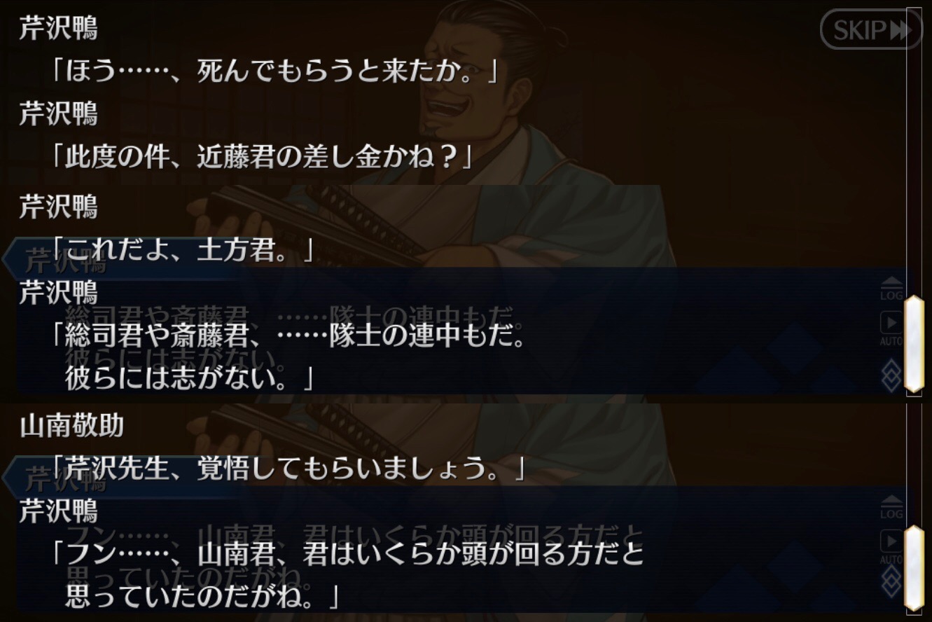 沖田と近藤さんだけ罪悪感で、芹沢に正義がある時だけ来てくれるかもだけど>>86
