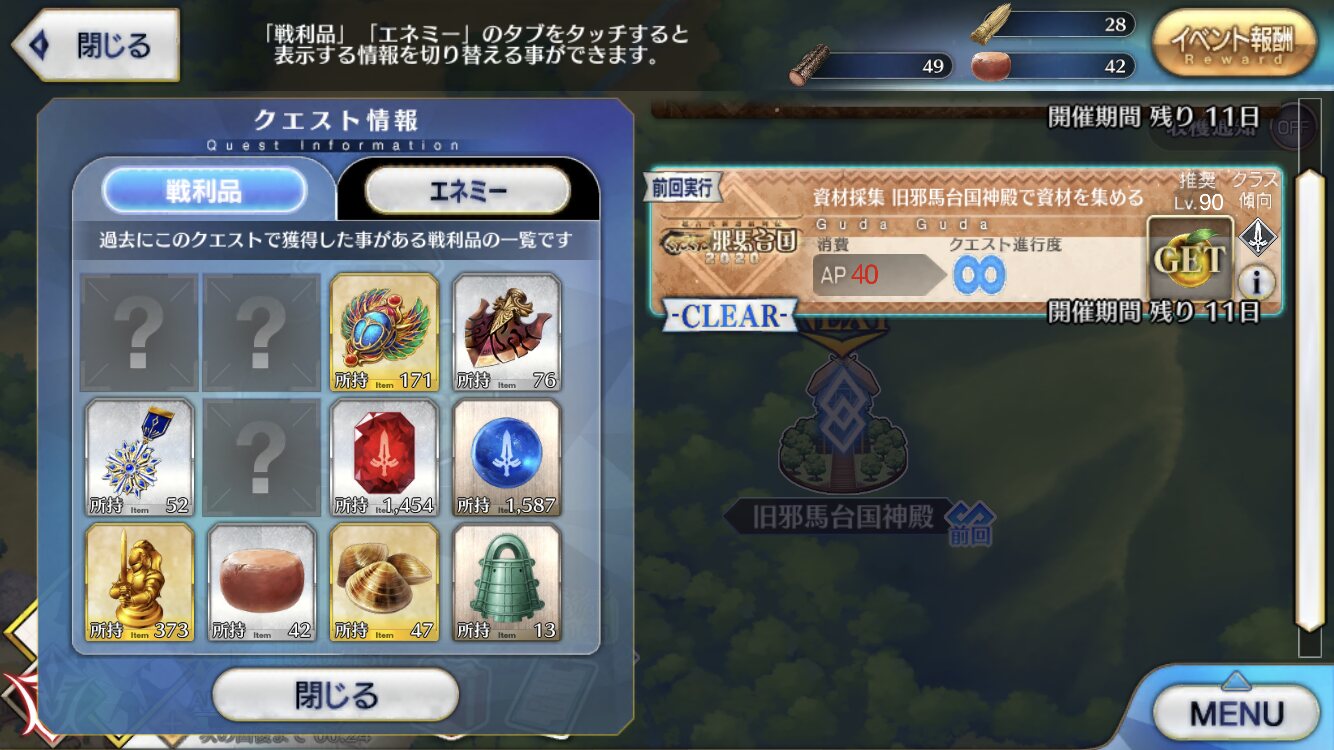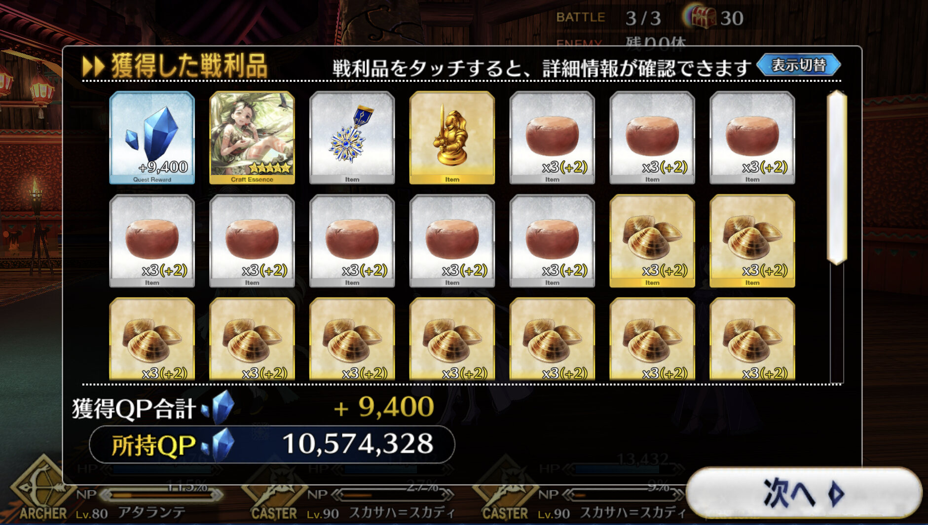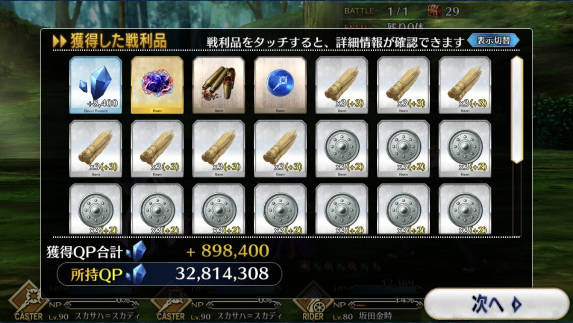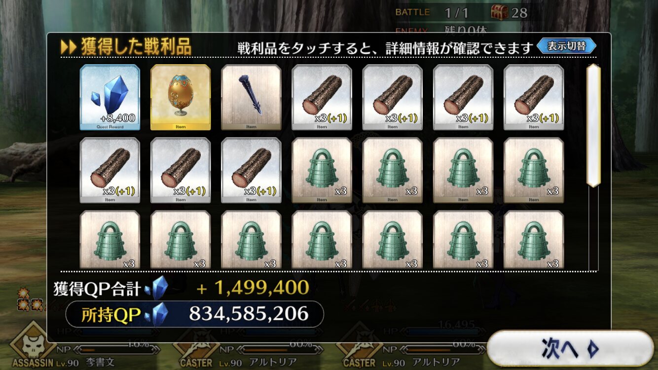 強化解除役お供につれていくといいんじゃなかろうか。秘石落ちるやんけ! ランサー周回しよ!!