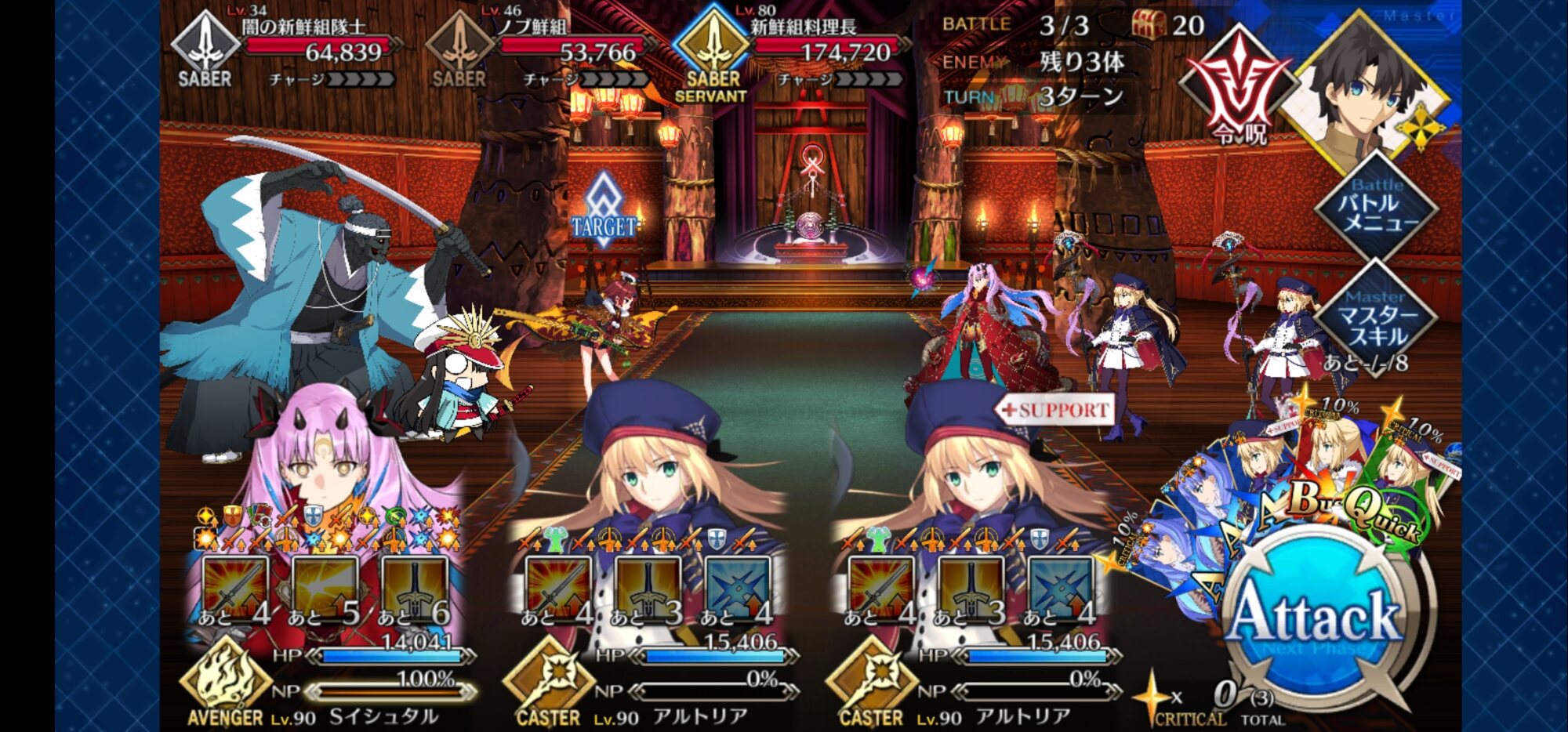 宝具マで全体NP20配ってスキルで回復させて散るの使ってると色々とやれそうでこれからの色んなクエストで試したくなる>>76