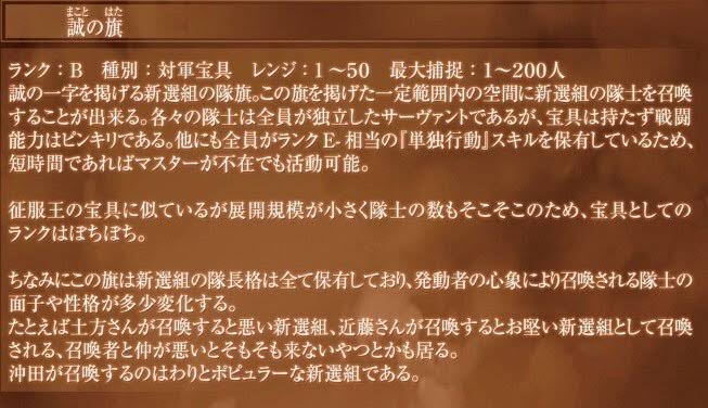 近藤さん来るなら宝具で誠の旗して欲しいな