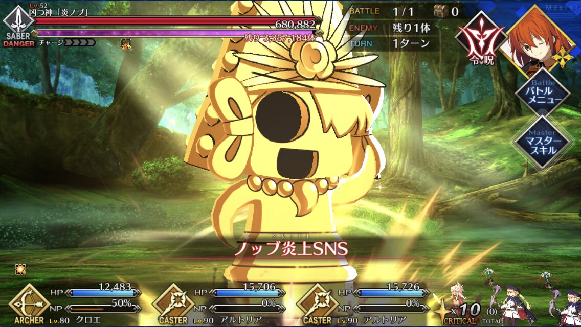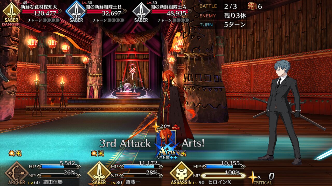 狂ノッブと炎ノッブ(剣)はもうロビンフッドさんにイーバウしてもらうだけでワンパンなのでやはり星3弓は魔境