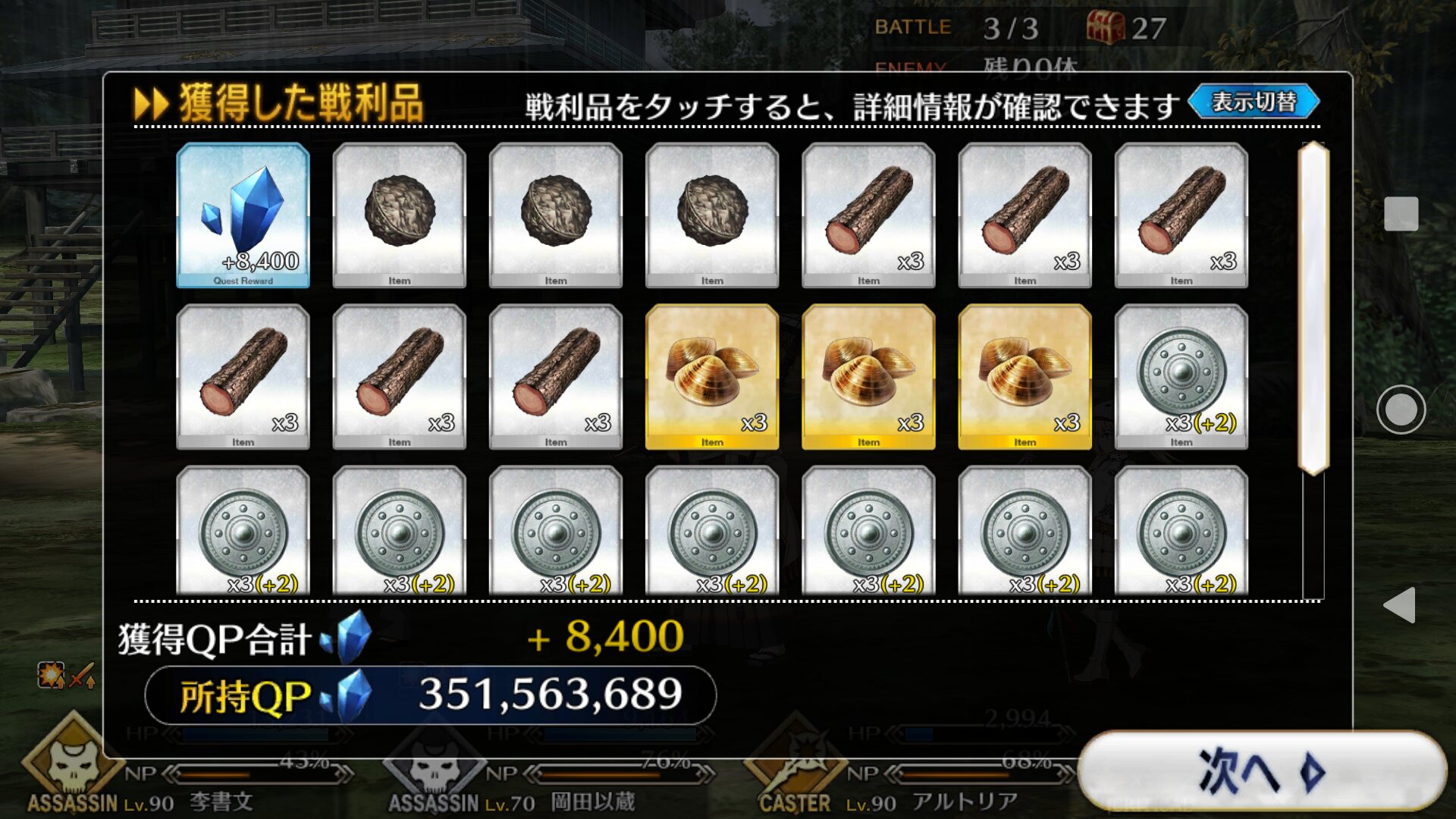 QPはこんもりだが、ボックスにストックしてた種火はかなり減ってしまった。保管室にいっぱいある分はまだ手をつけてないが>>28