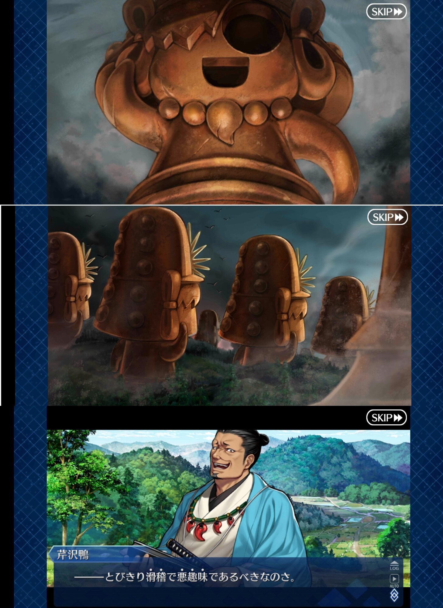 いつもの愉快な三国トリオ、レジライとかぐだぐだにハジけたがってるのが見える見える今回のイベントかなりシリアスなんだけど、魔王信長の最後の抵抗が埴輪ノッブってのが凄いぐだぐだしてて笑う