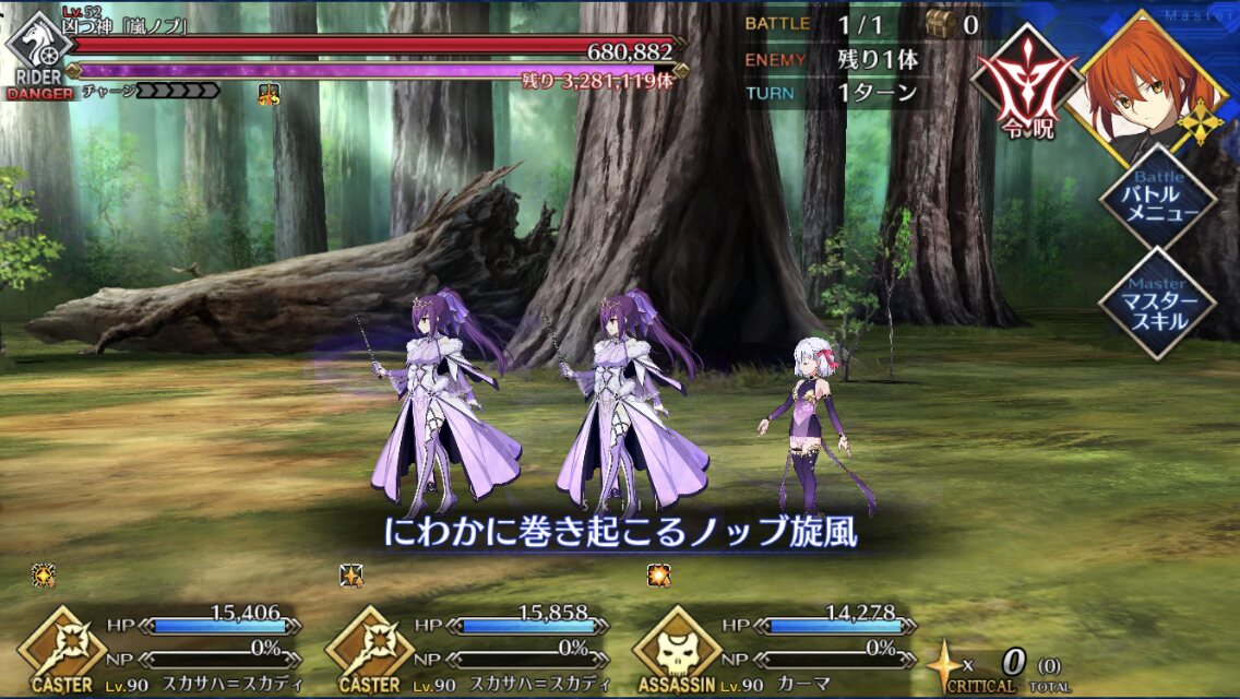 何か補足等あればよろしくお願いいたしますライダーノッブは凸特効礼装殺式さん(S3MAX)にキャストリアとNP20付与サバがいればいい感じかな
