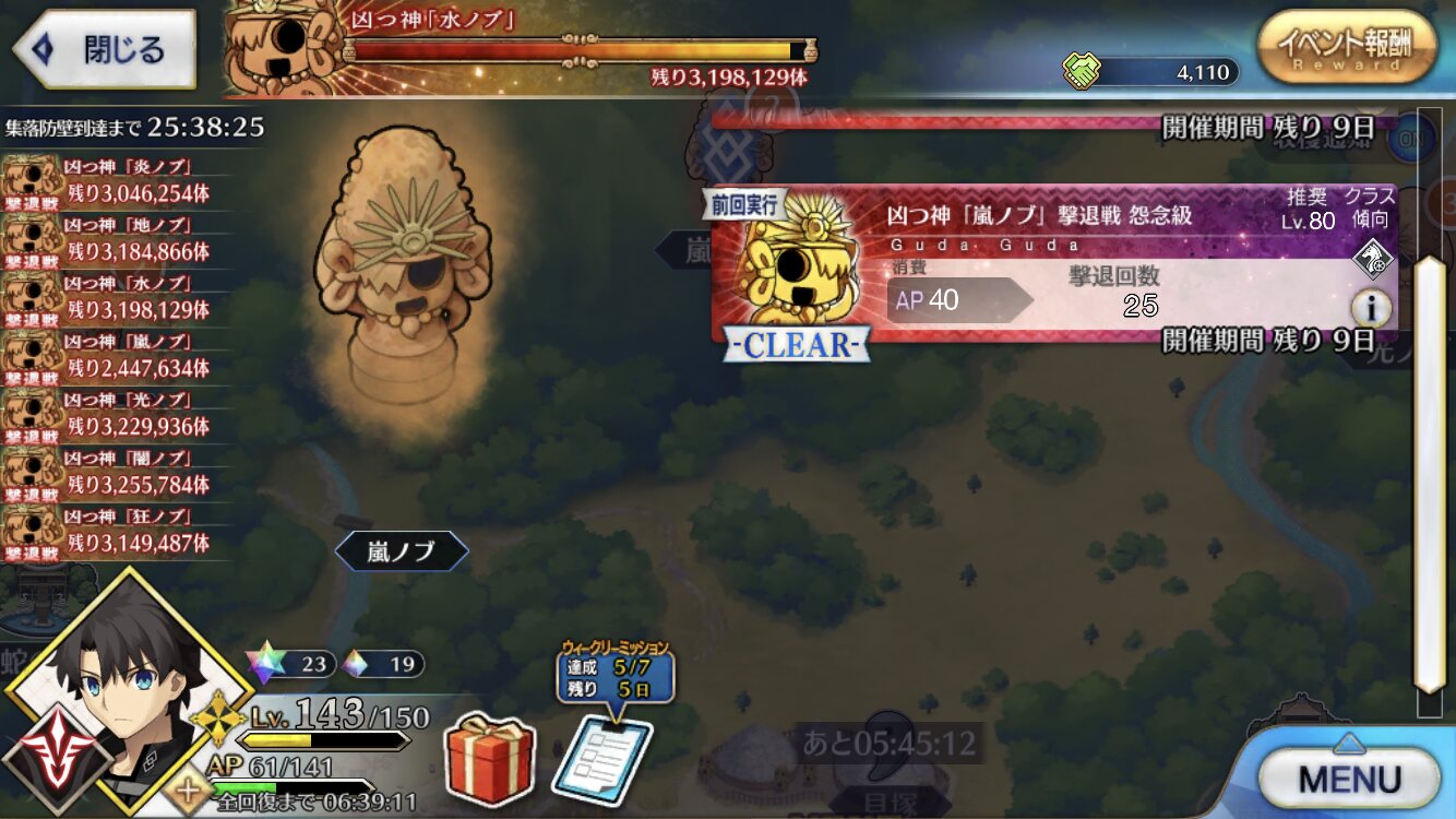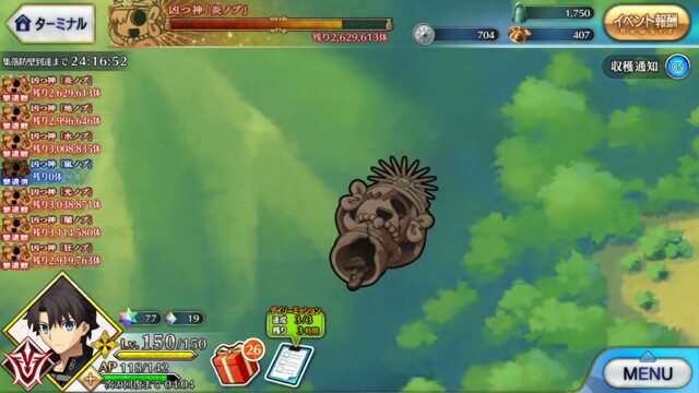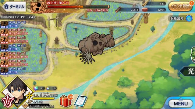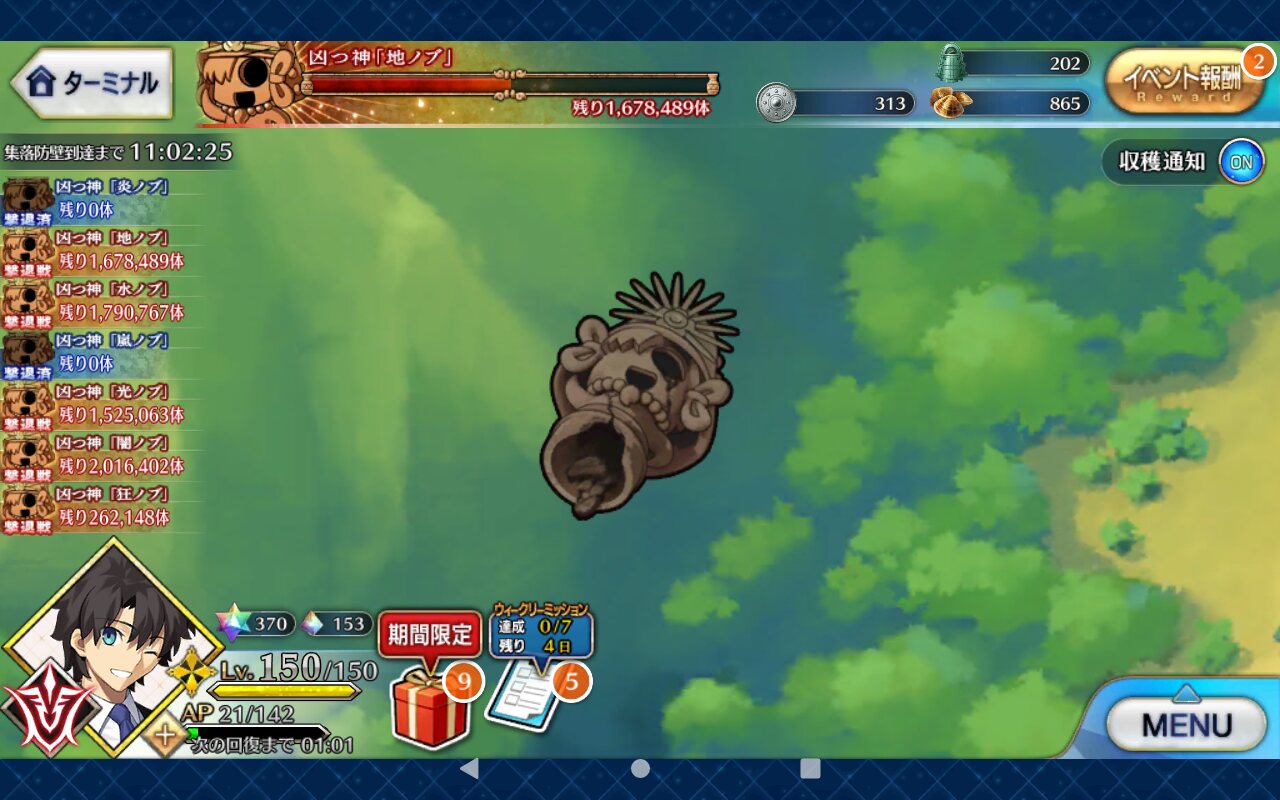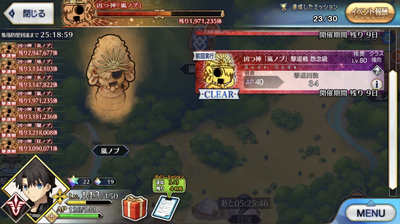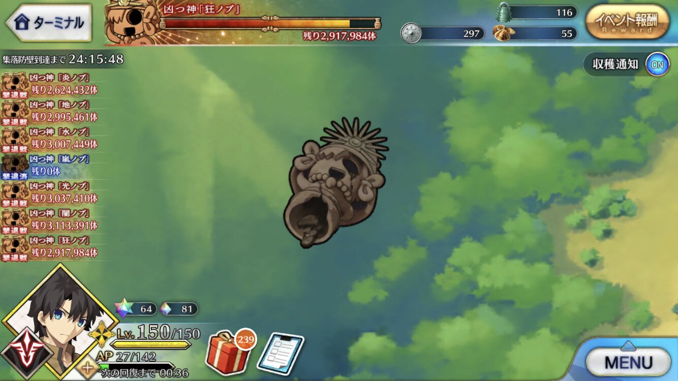 個人的に最優先は卵だが、その次は涙と心臓、根で迷うなとりあえずカッツを燃料に狂ノッブでアツモリして吹っ飛ばしてるんだけど、カッツでの火力アップすんごいな……