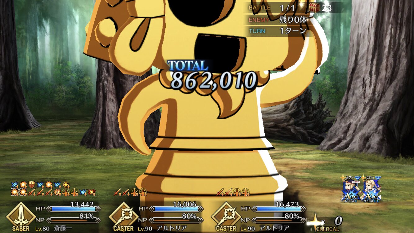 おじいちゃん、極限まで強化するとアーツクリだけでHP半分以上削るから、フルクリティカルチェイン出来れば宝具すらいらんのが便利。>>76