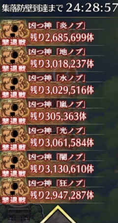 スカスカ凸特効酒池肉林でまとめてなぎ払え!どうでもいいけど防護壁到達までの時間とクエスト開催期間が別なので、防護壁突破されても殴れる可能性が