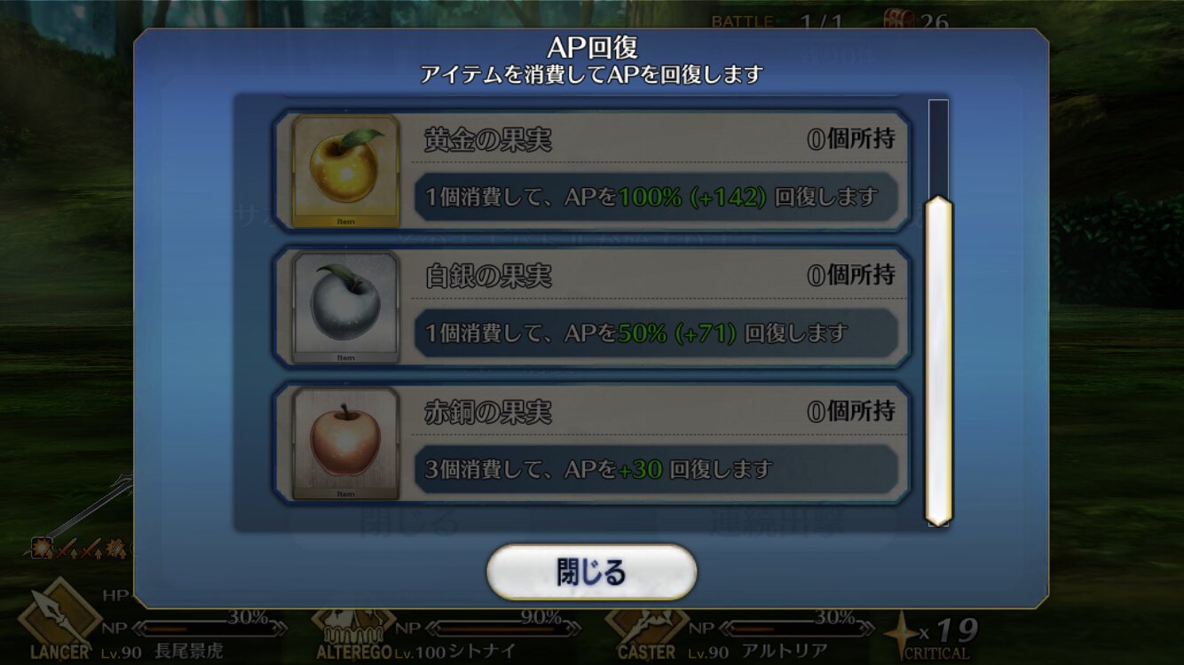 色んなキャラを多く引く人ほど育成にかかるコストから林檎の消費も増えるだろうしせめて、どのノッブかが勾玉落してくるならリンゴ齧るんじゃがなぁ