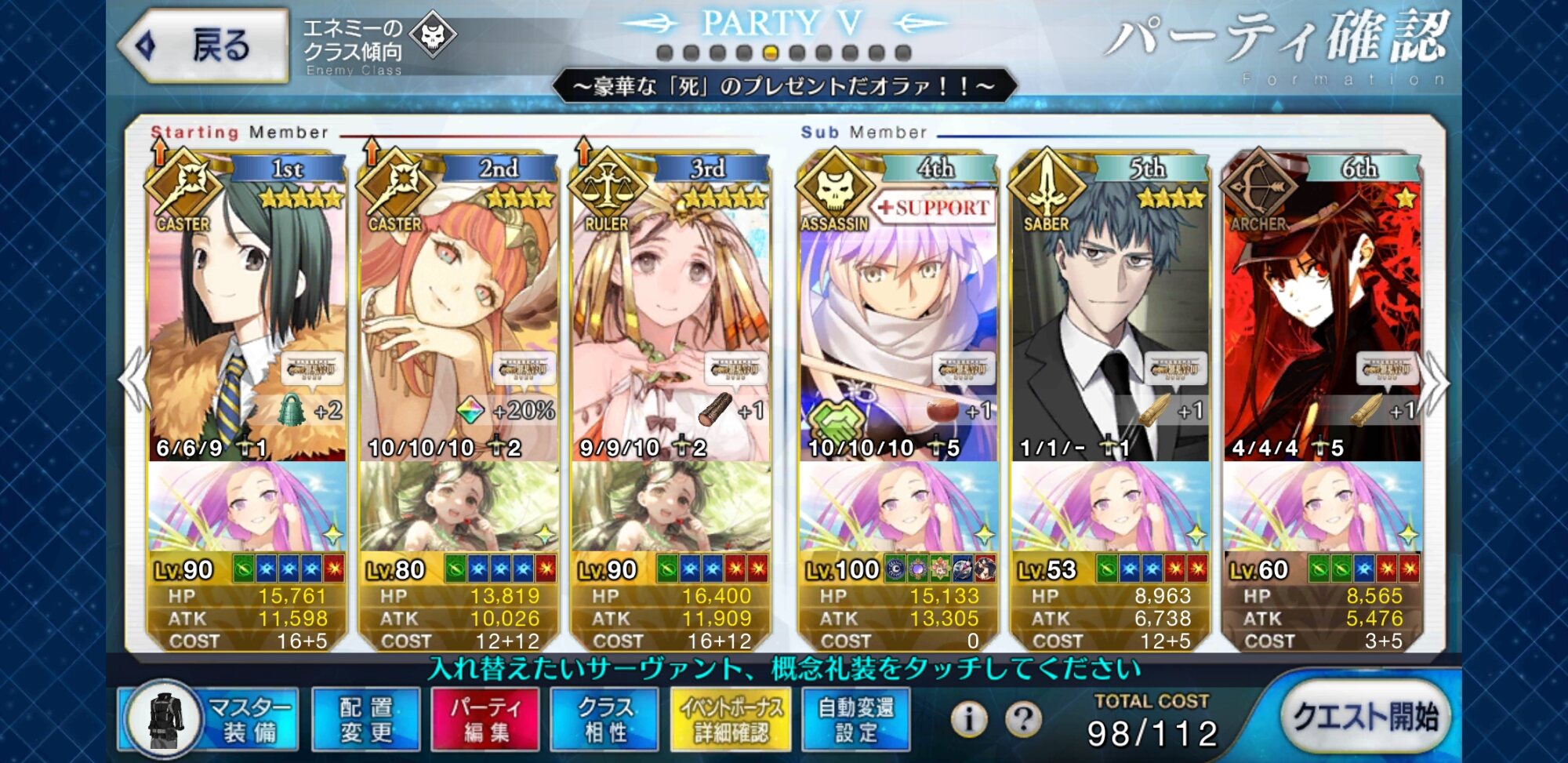 なんかこのギリギリ感楽しいわもうサポートの礼装で選んでられねえ!適当に選ぶわ!