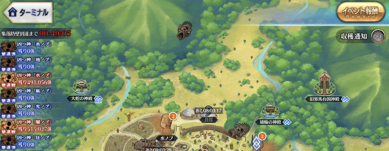 ほら、そこらにしばき倒し申した諸々の禍津神様方があらせられるじゃろ? 御祓差し上げて崇め奉り申し上げれば福神様に成られる故、何も問題無きに御座候。一部が防壁まで到達したところでシナリオが進んで、信勝が準備してた堀とか防壁それ自体で埴輪の動きが少し止まる的なのが来るんだろうなと思ってる