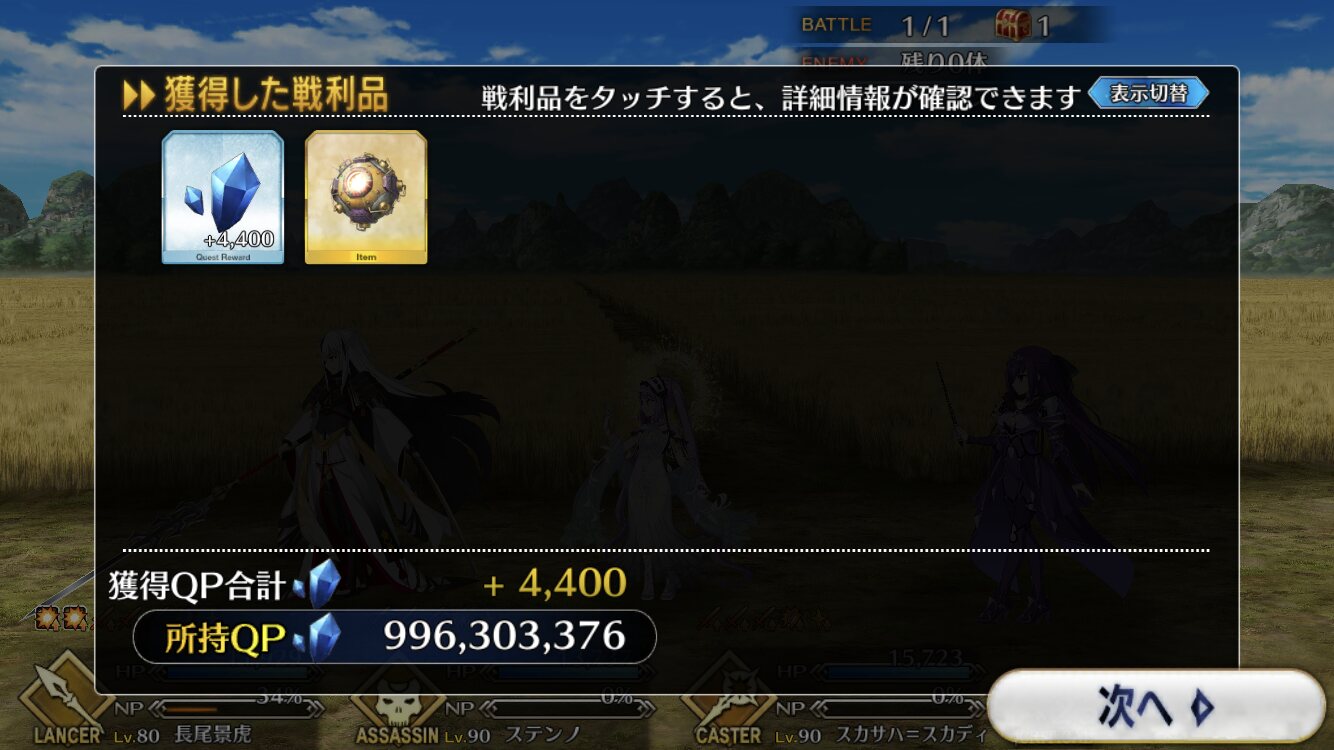 俺たちは今、新たなFGOの歴史誕生の瞬間を目撃したんだえ、やったん?(今フォウ君は知ってるリザルト画面)