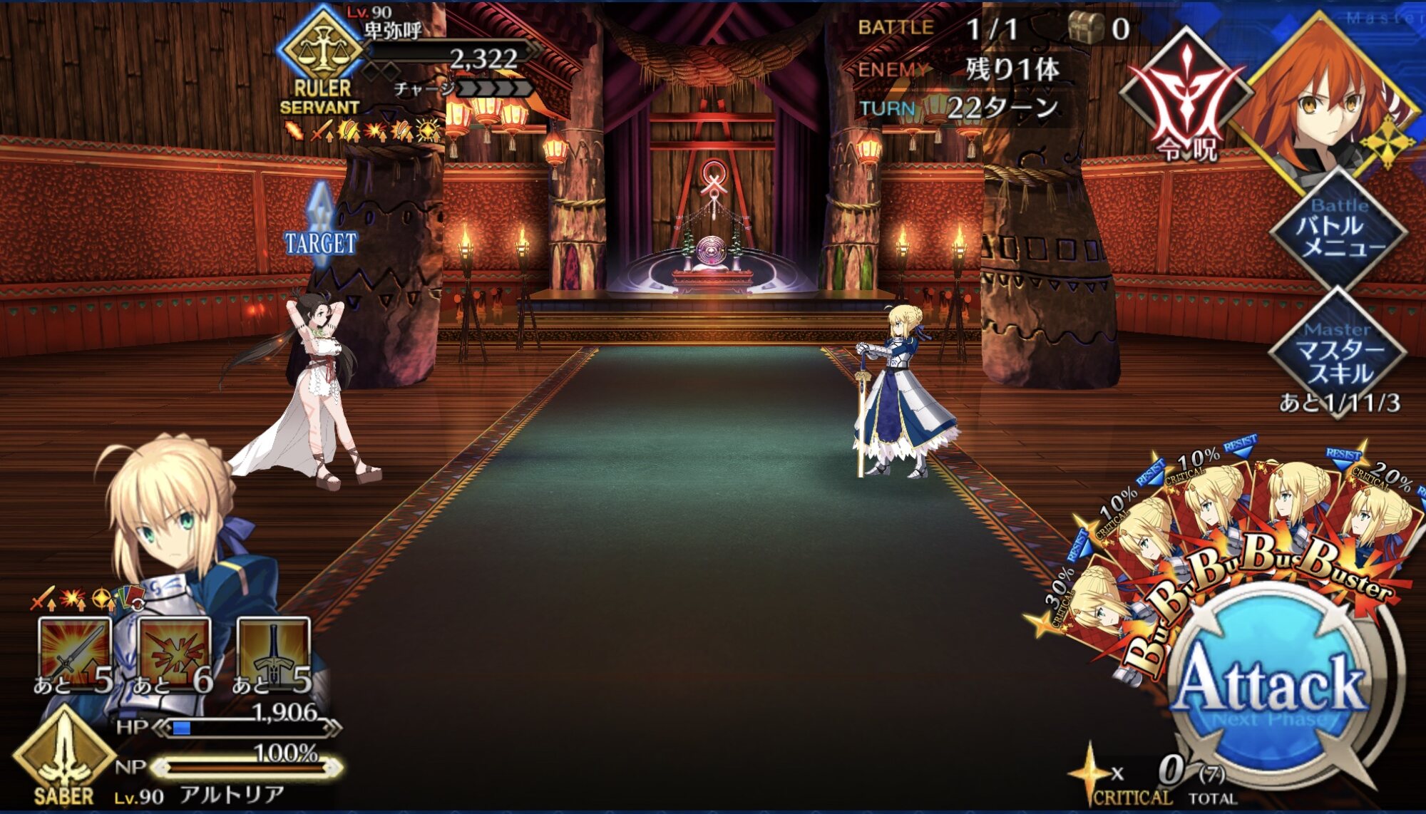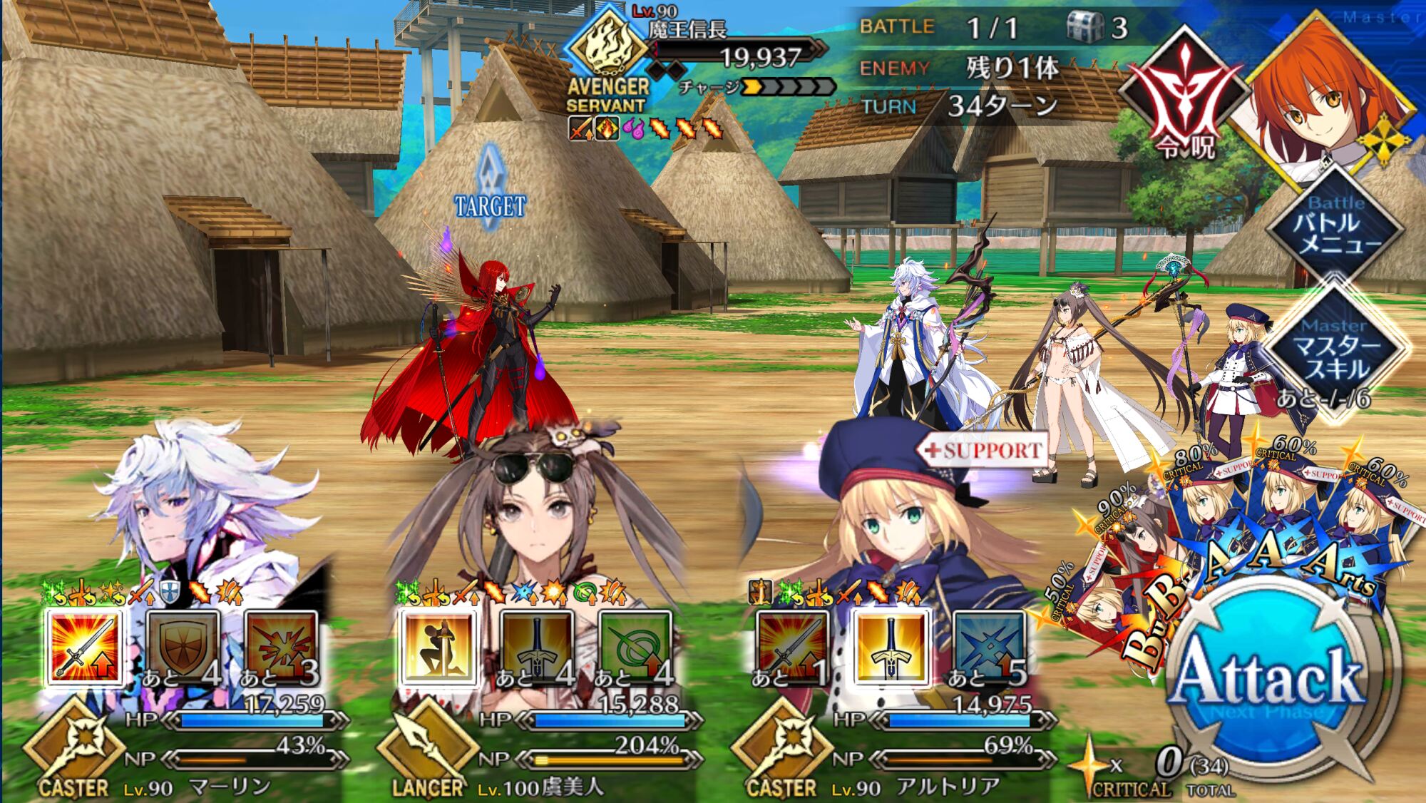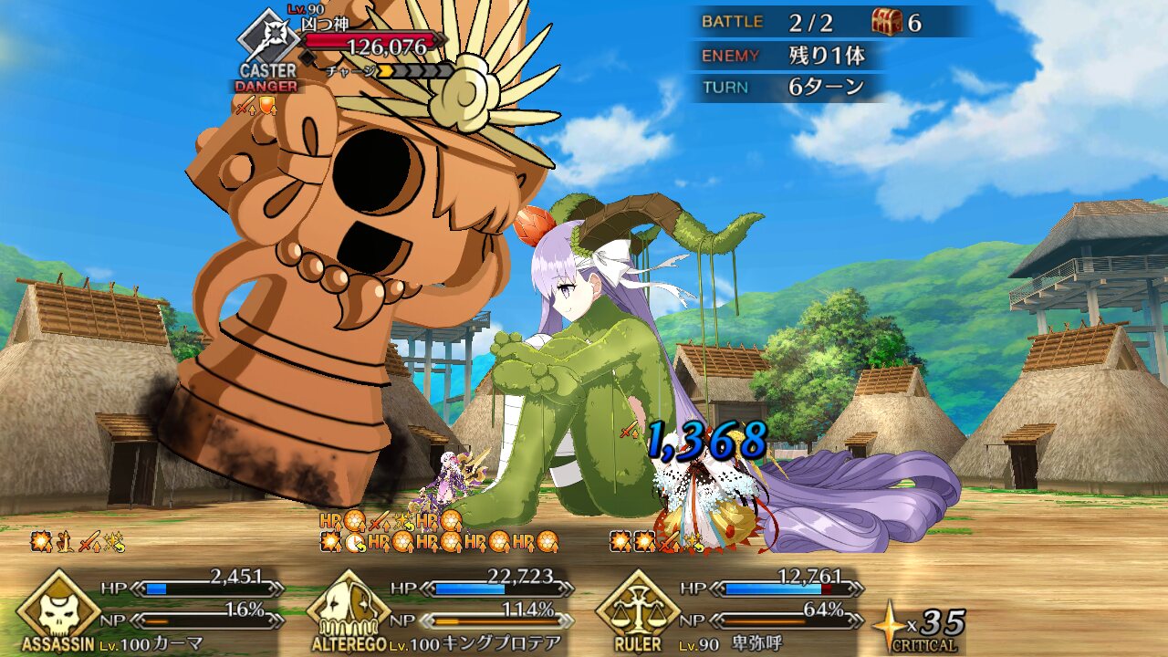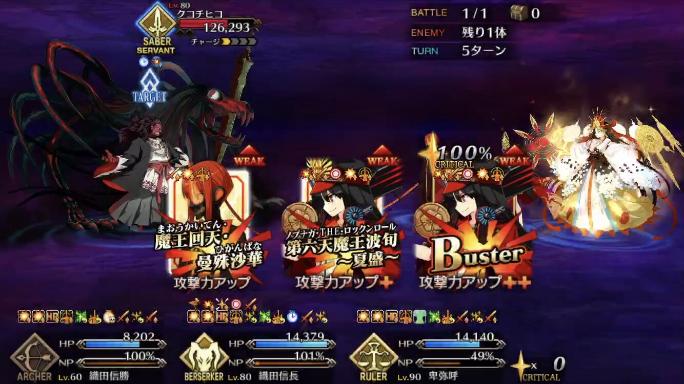いざというときは自分も殴れる、皆を支える女王高難易度、魔王ノッブ相手ということで水着キアラ+Wキャストリア+卑弥呼様で行ったけどまあ強いな…