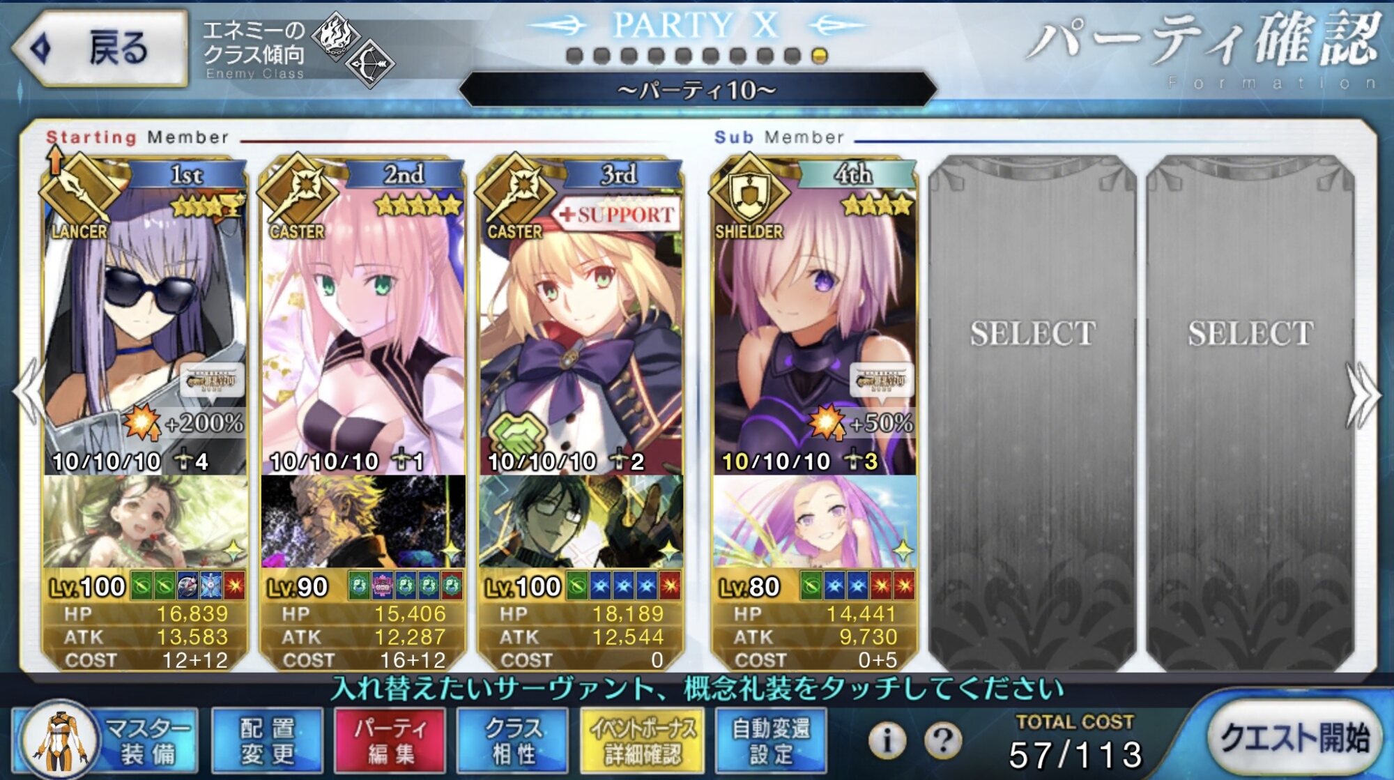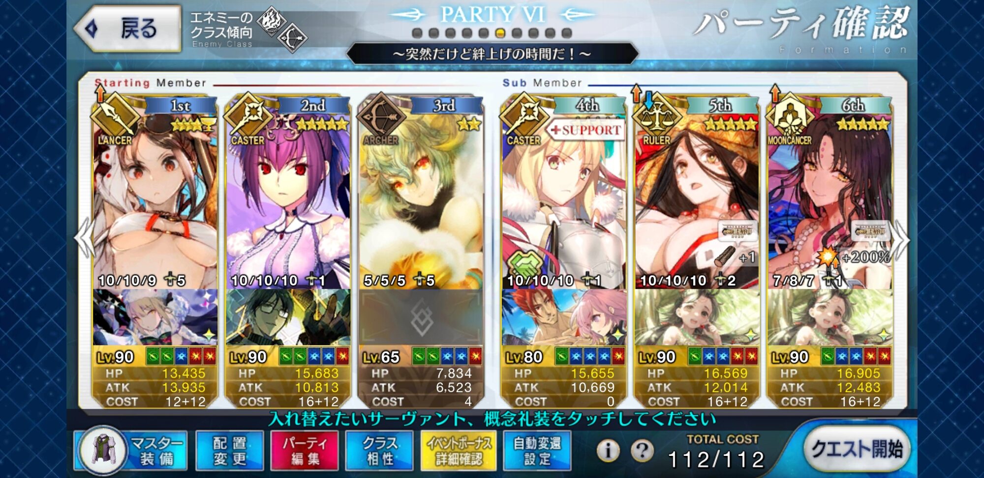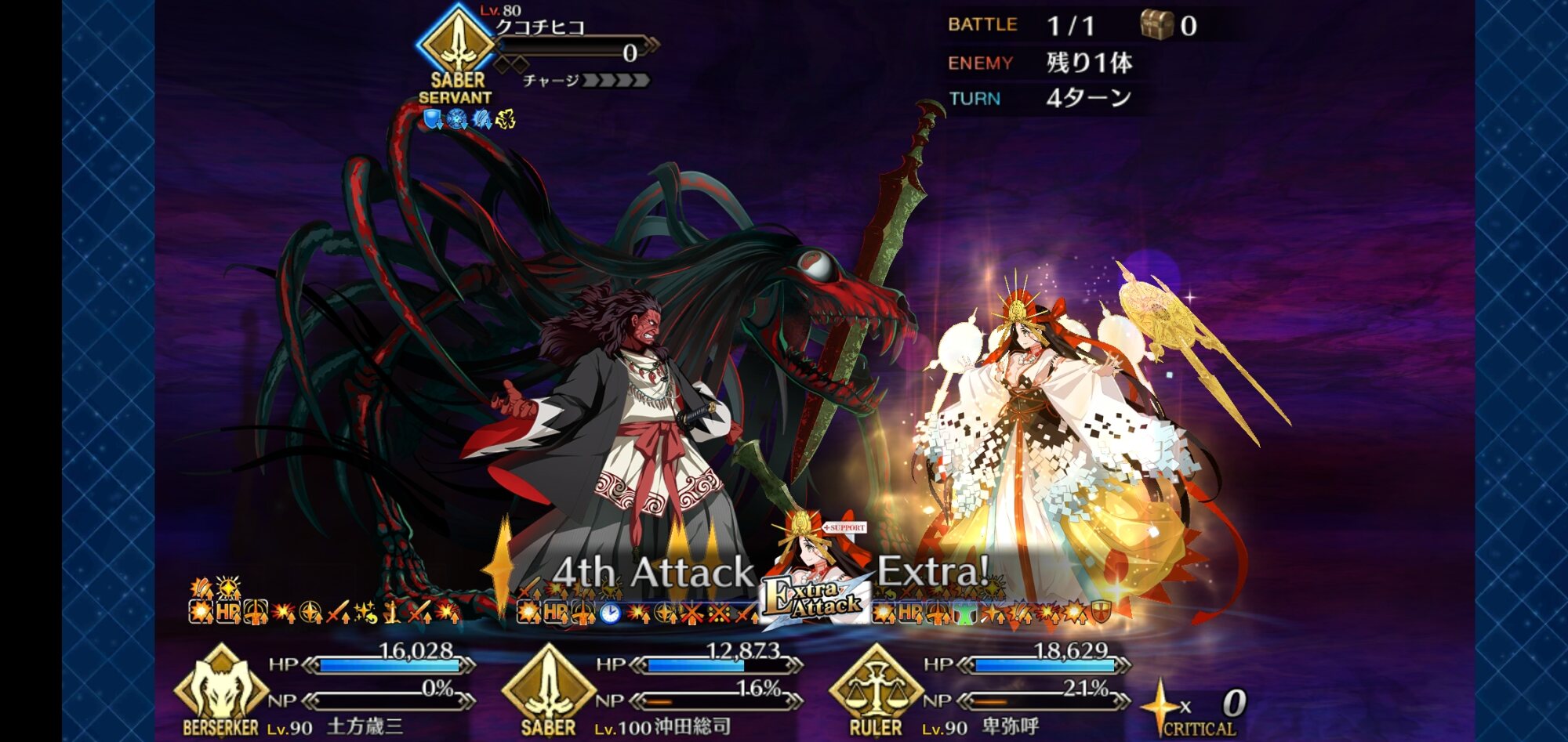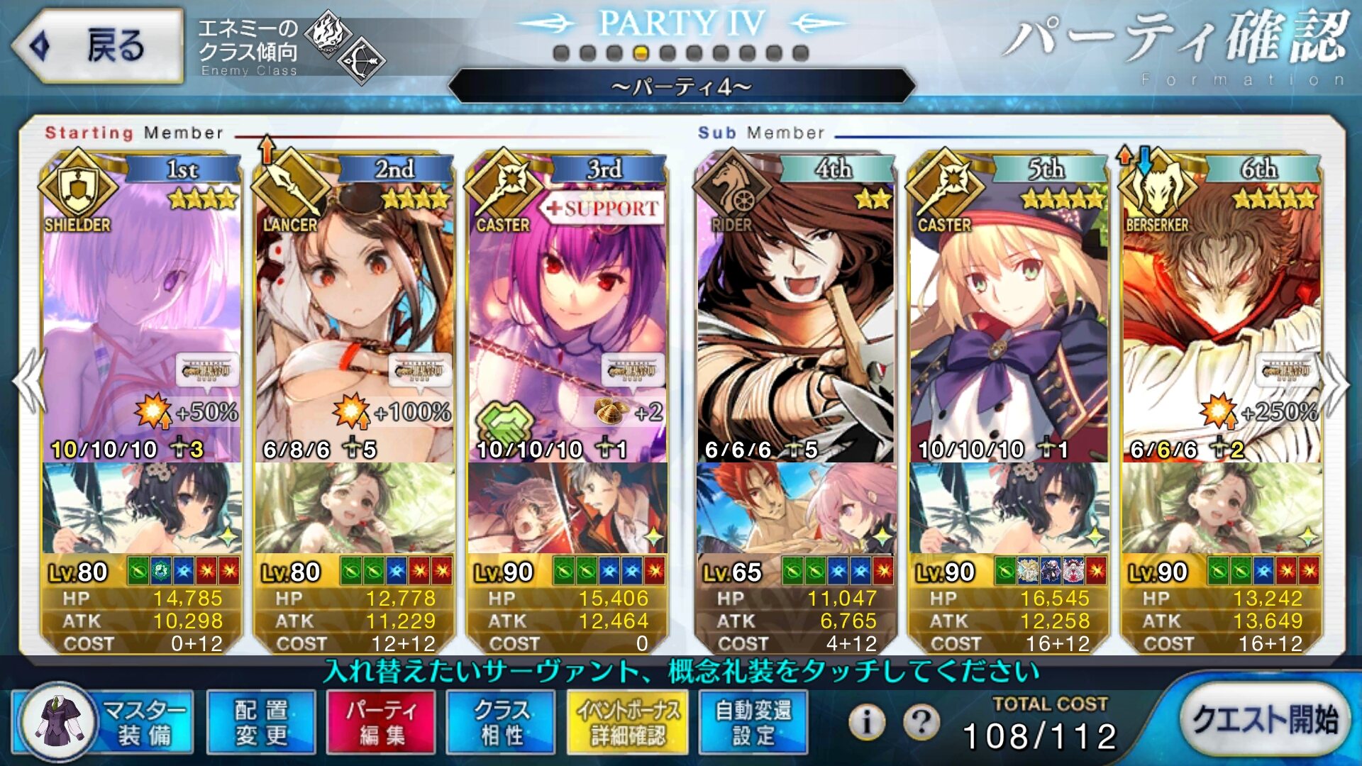 いざというときは自分も殴れる、皆を支える女王高難易度、魔王ノッブ相手ということで水着キアラ+Wキャストリア+卑弥呼様で行ったけどまあ強いな…