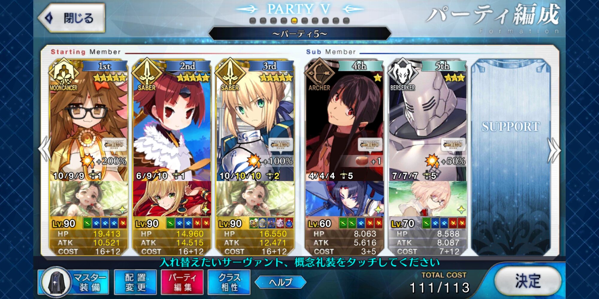 真面目に受けたの最初ぐらい(しかも役割終わった森くんは落ちて良いし選定の剣の剣も守りもあるから大して怖くない)だったし、こちらに効く強化干渉も使ってこないから、この編成が実現できるなら余程迂闊な動かし方しない限りはまず負けないよ>>943