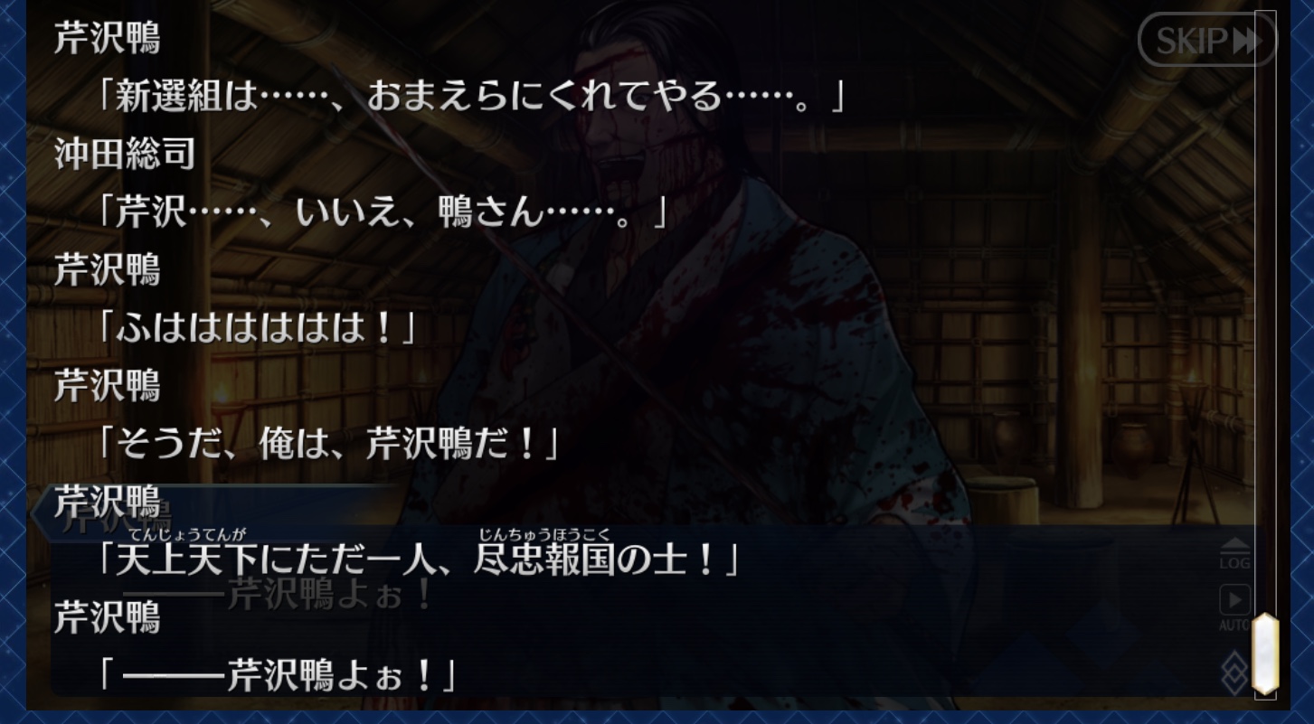 ぐだぐだ……ぐだぐだってなんだろう……メインシナリオ後日解放クエストのことかな……今回のイベントは新撰組ファンにはエモ過ぎる内容だったな…芹沢さん良いキャラし過ぎでしょ