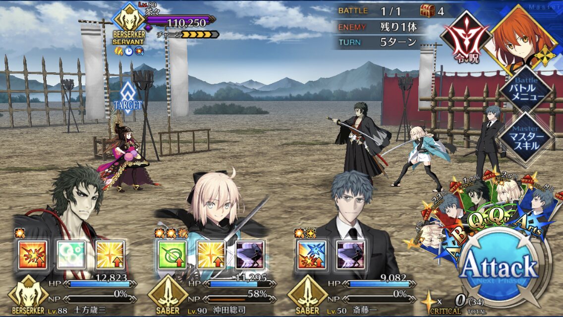 ノッブのゲージ3つくらいあったけど、全部土方さんが吹き飛ばしたよ