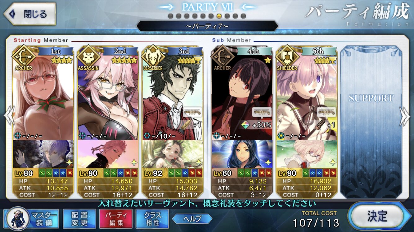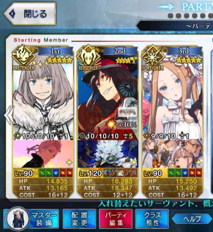 持ってるデバフが多用なので(強化解除、防御デバフ、バスター耐性ダウン)、アタッカーの火力が心配な時も入れておけて便利 自分とかは陛下で回ってるので居てくれて心強いレイド失敗した時のシナリオはマテリアルに追加されるのかな?