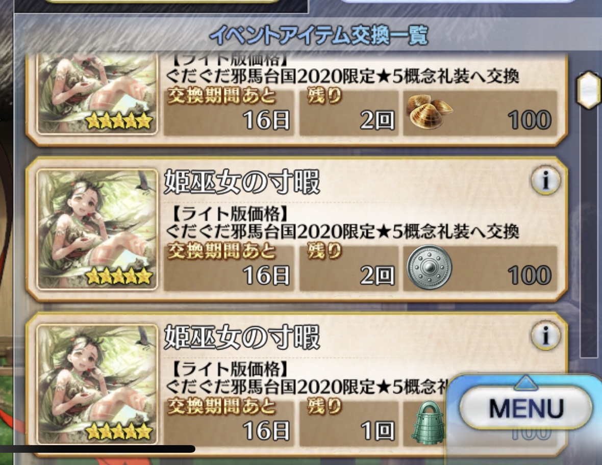 何気にもらえる伝承結晶が増えているんだよね…実は1シナリオで18個はもらえないと新規実装キャラのカンストは無理という>邪馬台国