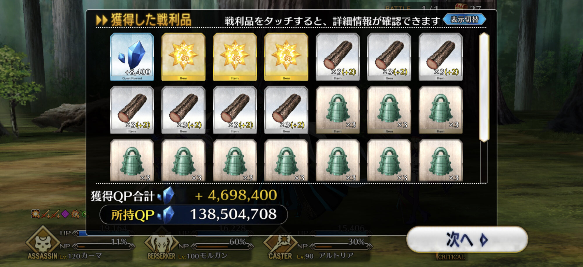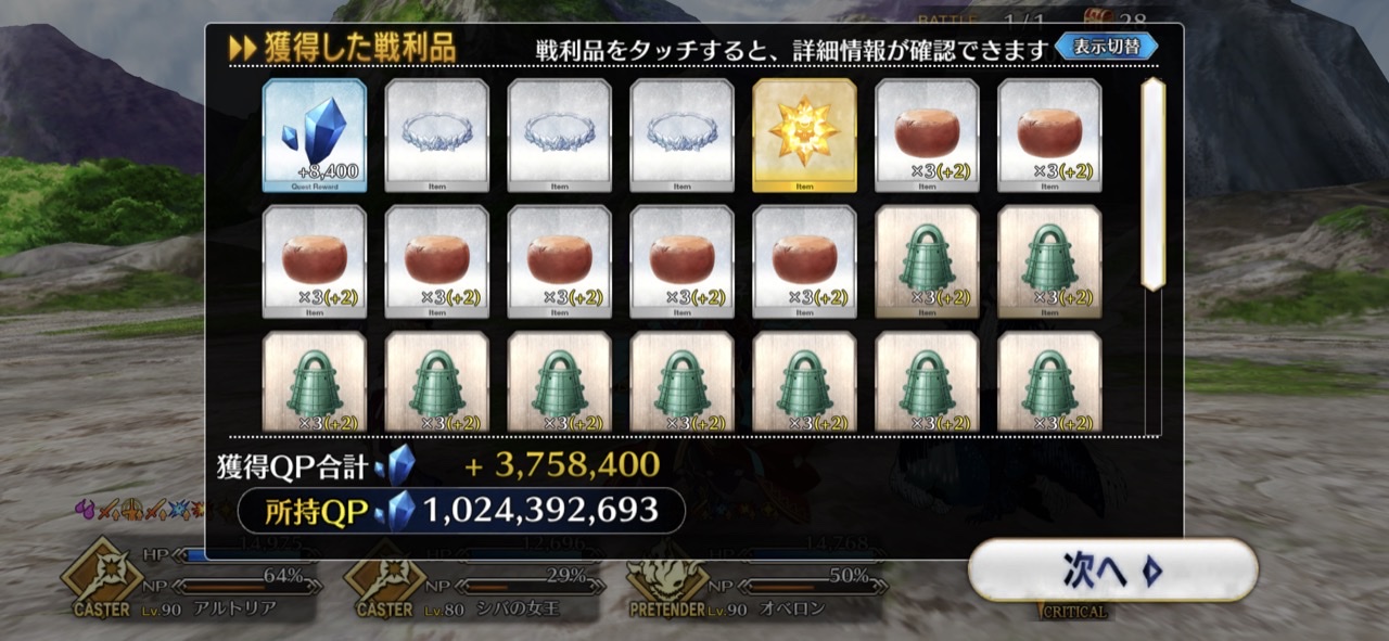 何体かは朝までいると思ってたのに大体7億QPぐらい稼げたな