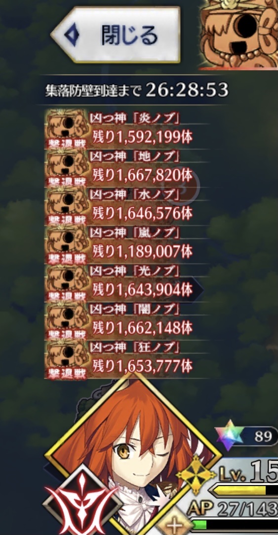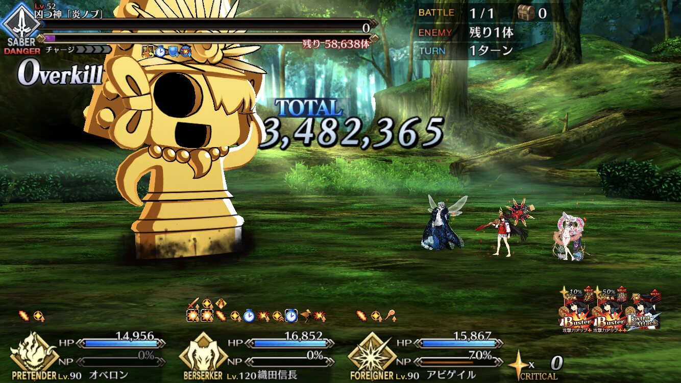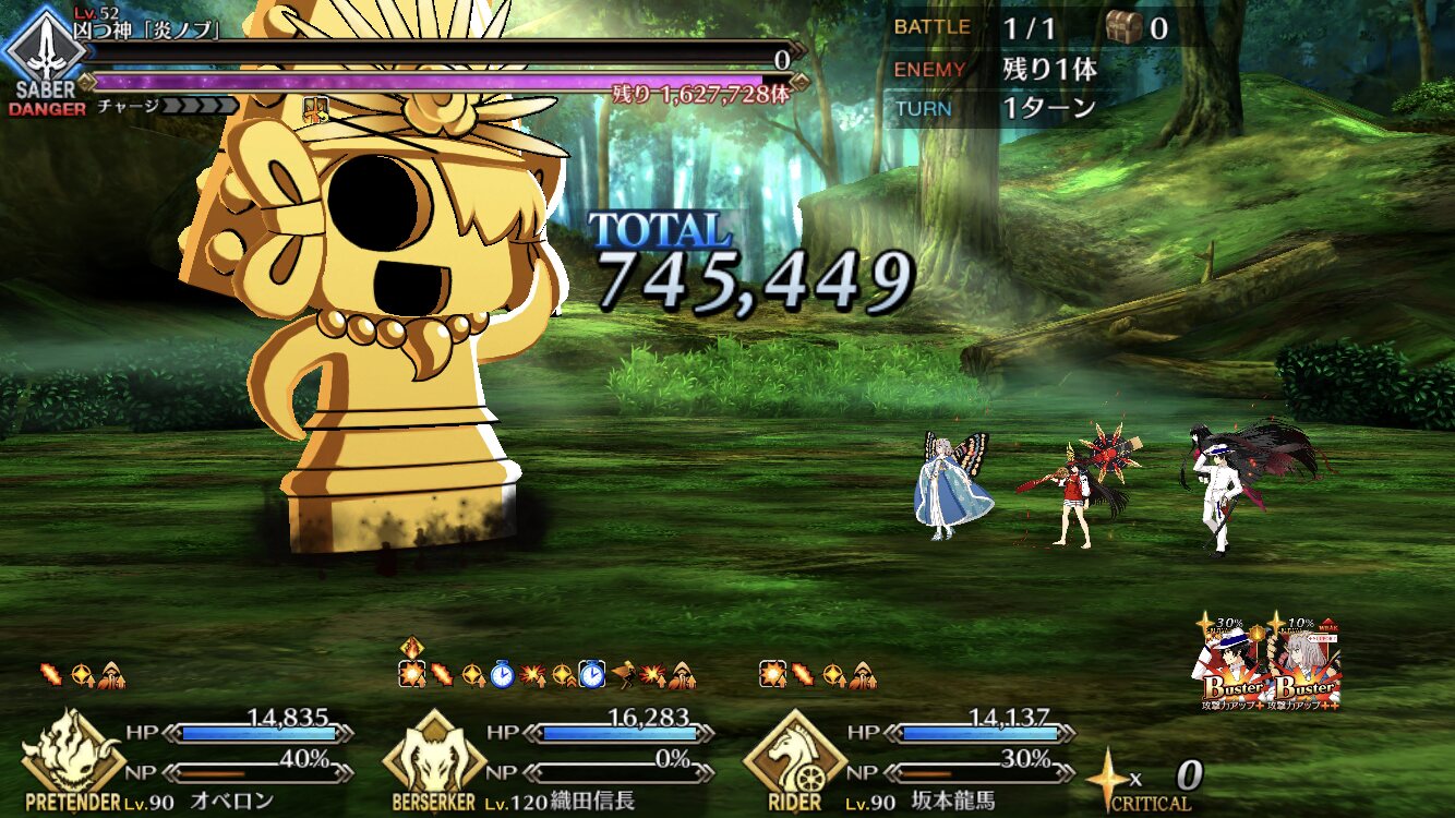 そういえばこのノッブは天属性だな。明らかに前回より埴輪ノッブが倒れるペースがアップしてるよね
