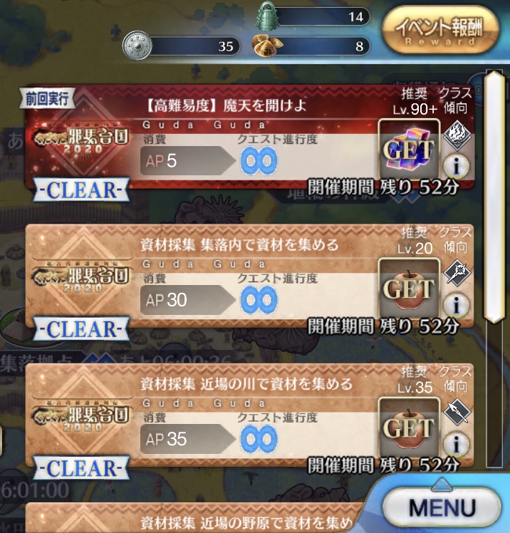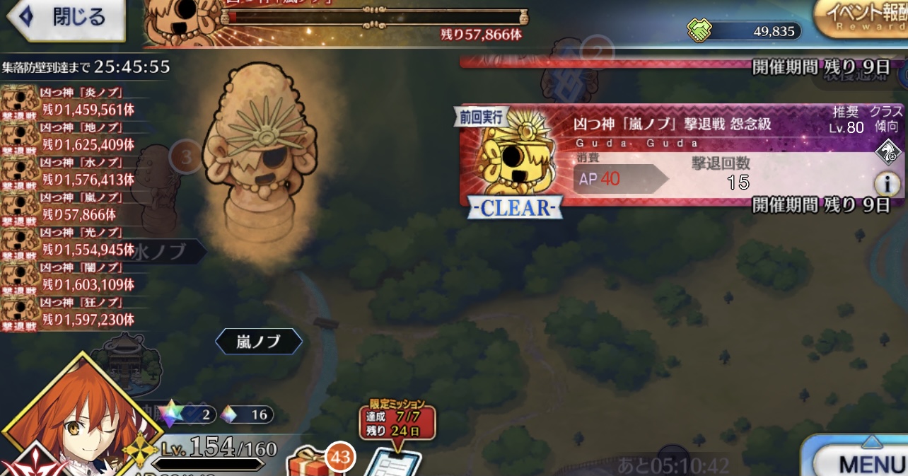 今回何が良いって期間が短いから全力出しても林檎の消費が控えめなのよね。長いとぐだりやすいし。
