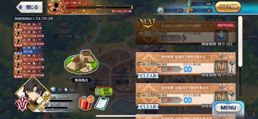 まあ、脂余るわってマスターは間違いなく本編もイベントもガッツリこなしてるタイプのマスターだからな・・・マスターミッションに「天属性を30体倒せ」が追加。