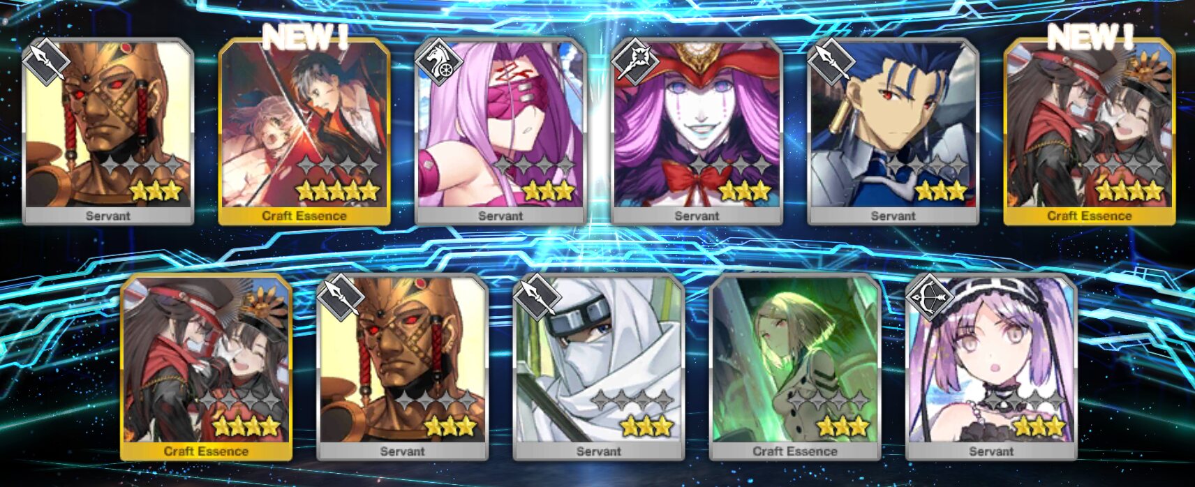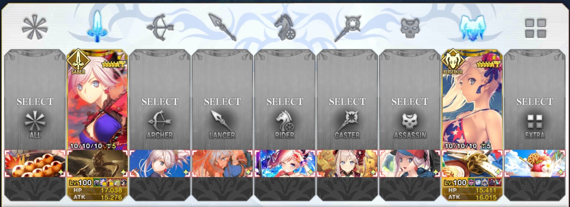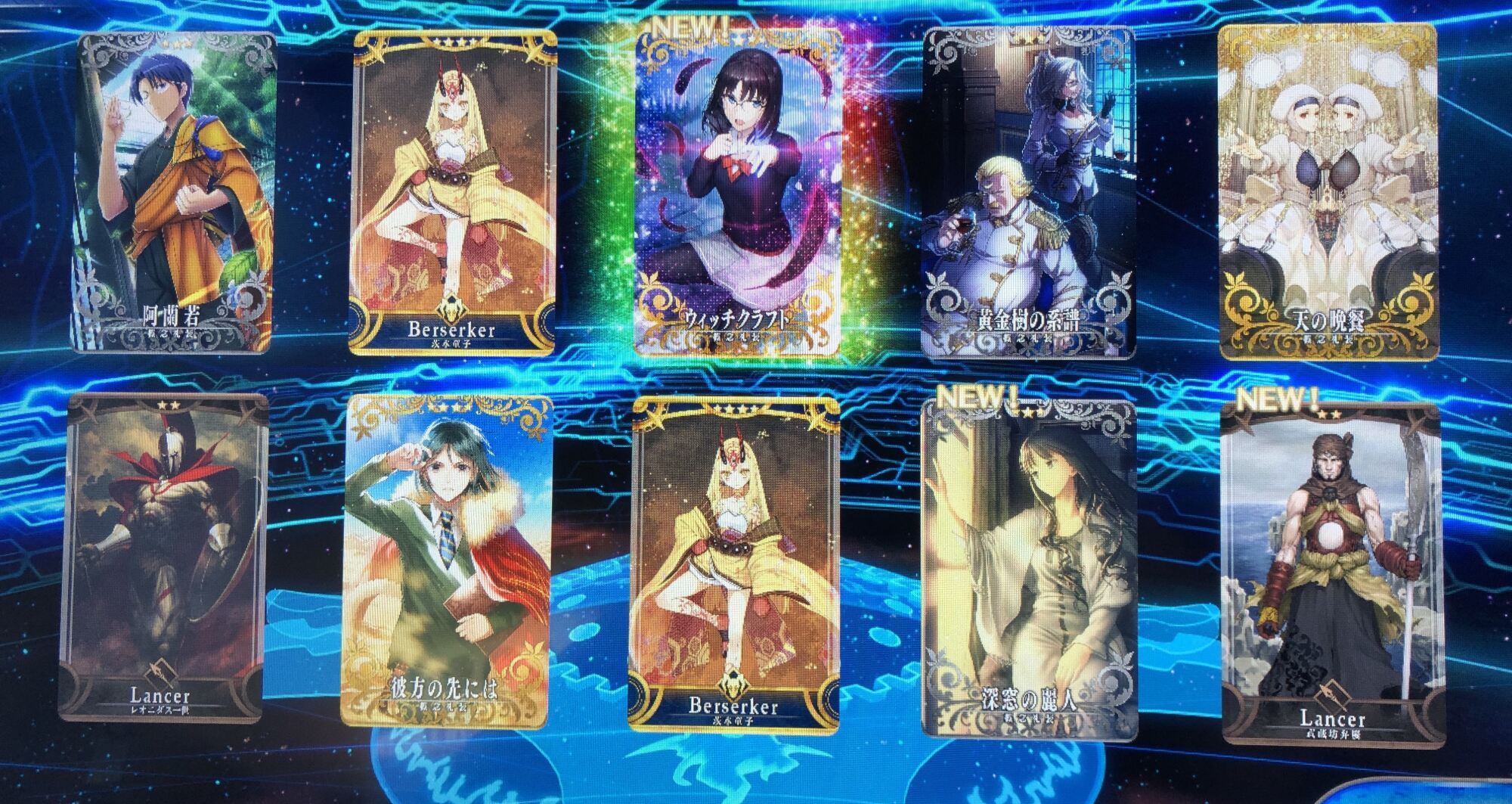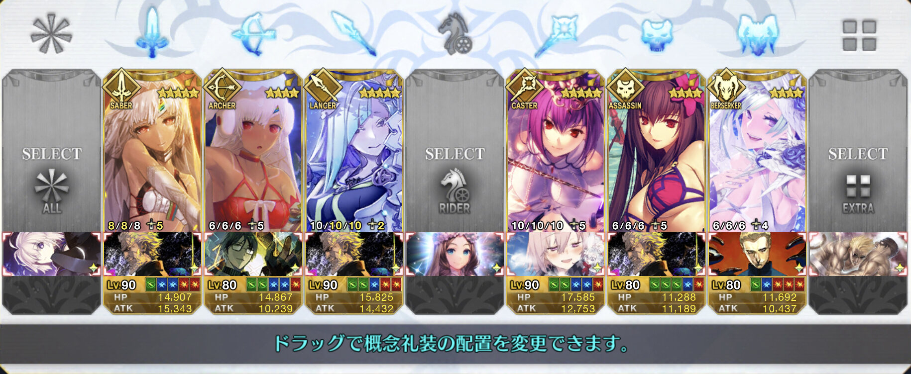 上から、騎、裁、讐、槍、狂、弓、剣、殺、術