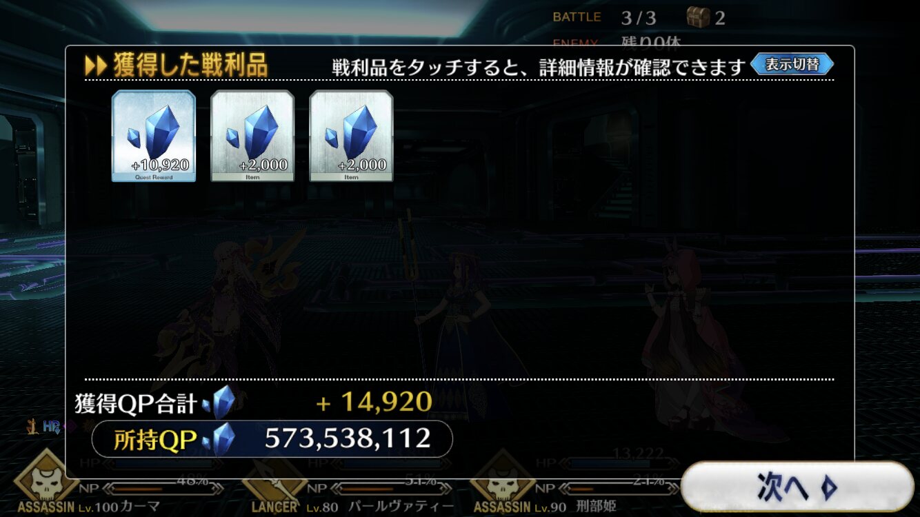 最終戦:バーサーカー ミクトランテクートリ逆に水属性だと、フィンとか、後は水着鯖の一部とかは色のせいかAが多いかな?