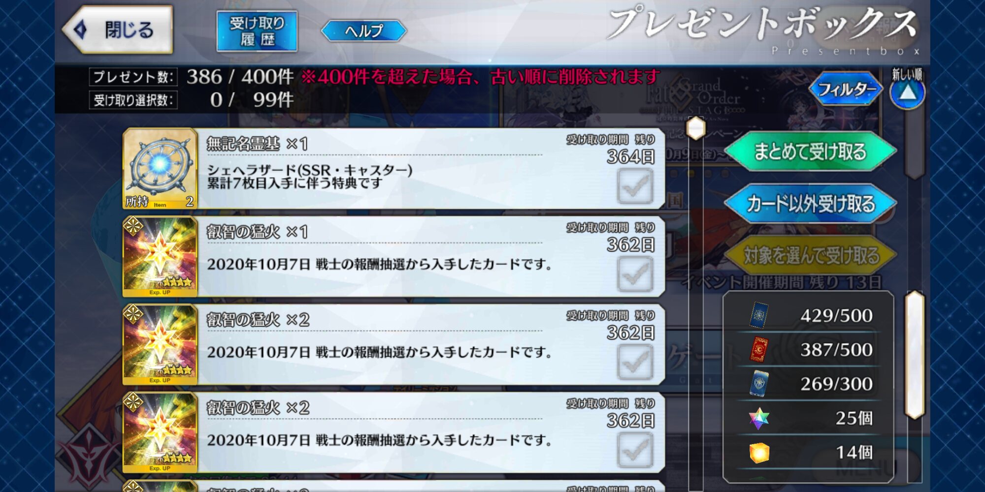 凸1枚と未凸が2枚でございますサンタオルタのコマンドコード欲しいのにサンバ復刻しないから入手できない…