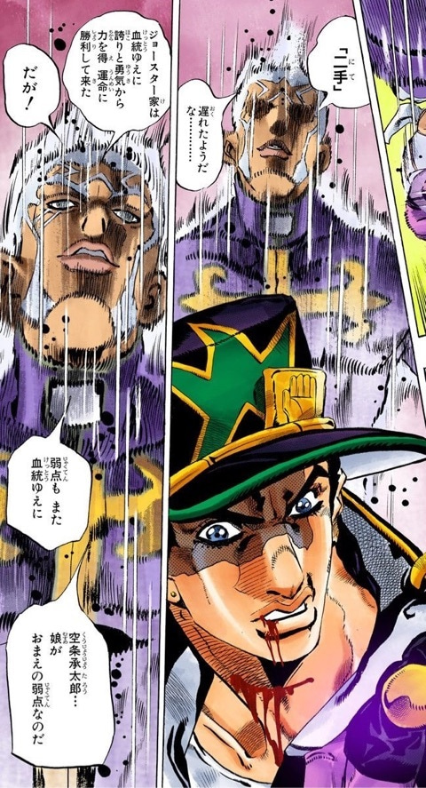 というか、若返りという強能力に全振りしているためか破壊力もスピードもDなので、いくら相手を弱体化出来るとはいえそれくらいの武装はしとかないと若干不安な部分もある(承太郎先輩には負けるが…w)>>872