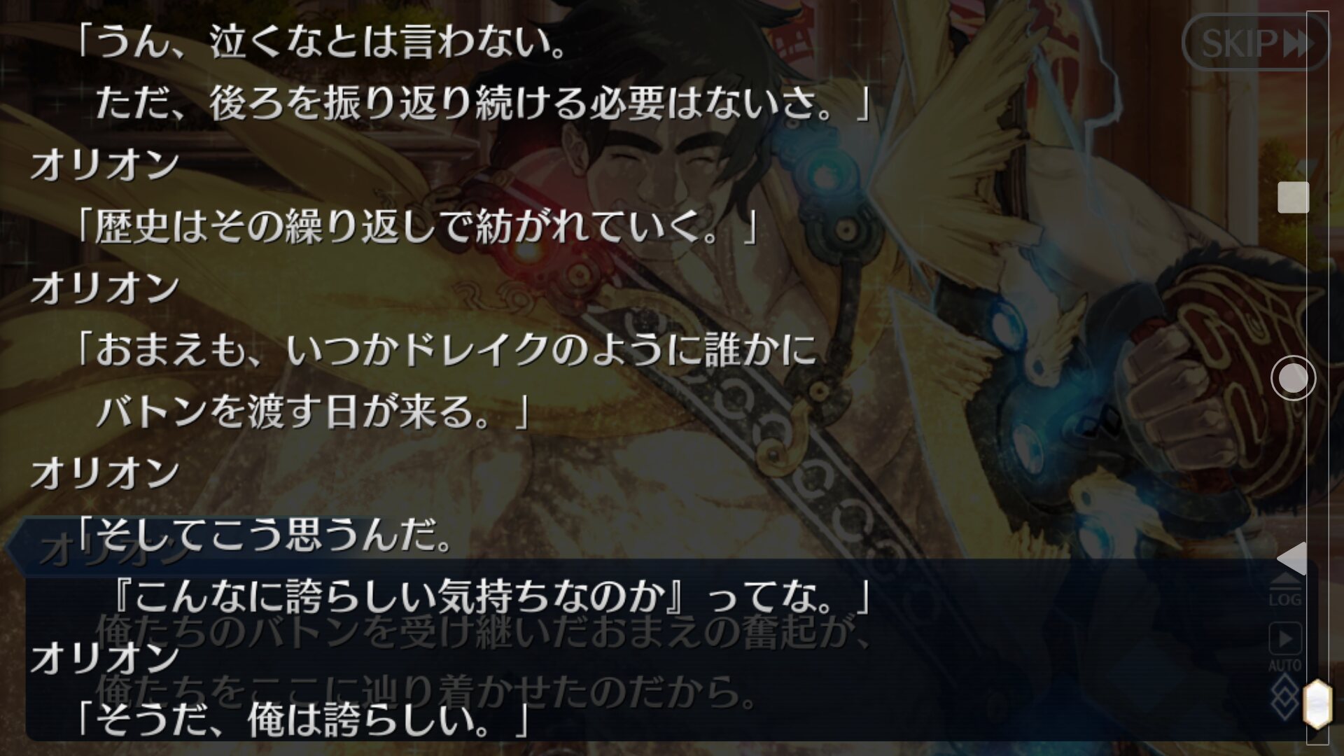 オリオンの場合、生前誰かに託すってことを経験したかわからないしな。ぐだたちも、自分の子供か、見知らぬ誰かに世界を託すエンドを迎えられるか。まあ、託したからといってそこで終わらなきゃいけないわけでもないけどな。託して寿命まで生きて死ぬ時を迎えることだってできるのは現代の強みだ>>955