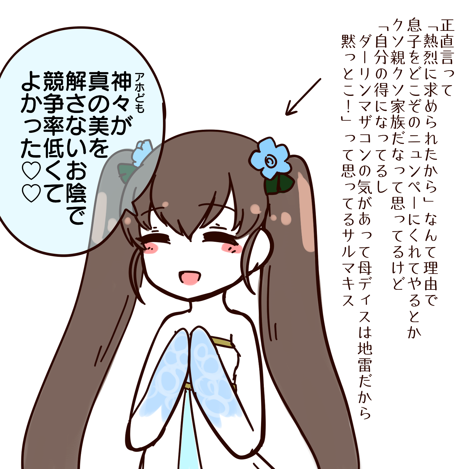 このちなみにデフォルト前のイラスト前スレラストのシンクロ具合に笑う、やっぱりみんな(深夜テンションだったとはいえ)好きなんですねえ