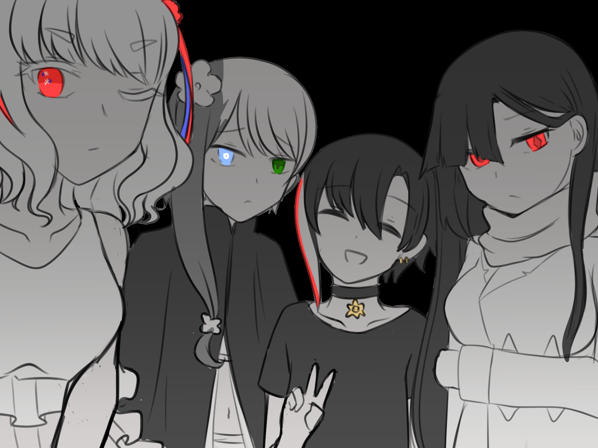 ウル(本家長女)(大きめ)>リア(本家次女)(控えめだけど成長の余地あり)>(人種の壁)>灯理(控えめ)>>>(健康体の壁)>>>ノエル(無)>ゲルダ(骨皮)A、B、C、D、Eカップ