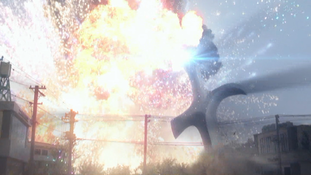「雨の中、傷ついた主人公を、敵の攻撃から防ぎ、そのまま煙の中登場」