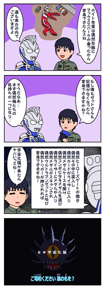 ハルキとゼットは仲良くボケボケしてそう>>861何気にショウもヤプールと帝王ジュダなど昭和の大物宇宙人仕留めてるよな…