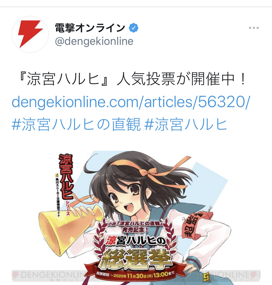 冗談ですそもそもハルヒ関係で最後にアニメ化したの長門有希ちゃんの消失だしな