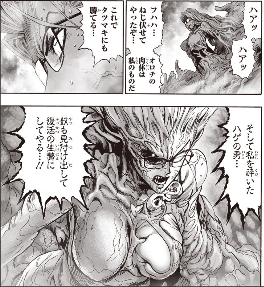 拙者ちょっと違うけどワンパンマンの171話のサイコスのように対象を吸収しきったと当人は思い込んでいるけど実際は意識を掌握されかけているアシュラ男爵めいた描写が大好き侍で候>>909