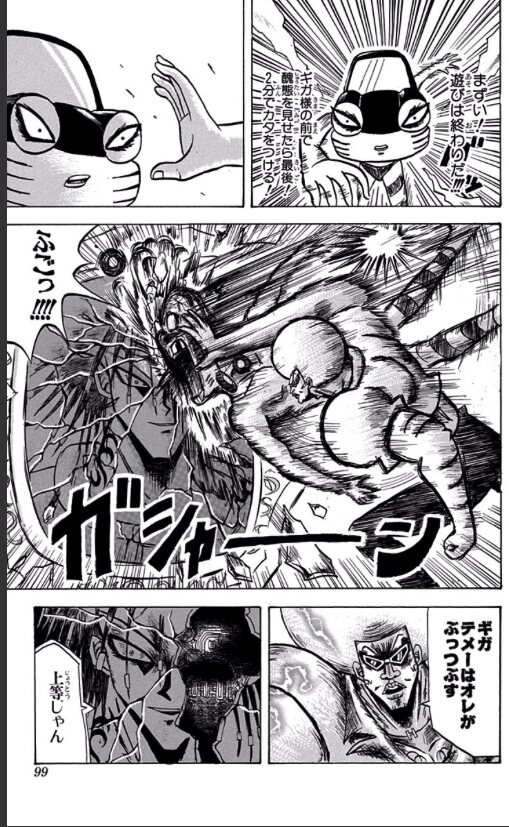 そうだよ。ちなみにケンガンオメガの方には原作者がWeb漫画として書いてた漫画のキャラがいっぱい出てくる。力持ち描写で好きなのはガードレールとか標識かを振り回して敵にぶつけるシーンだな。オールマイトと静ちゃん、ハルクみたいな