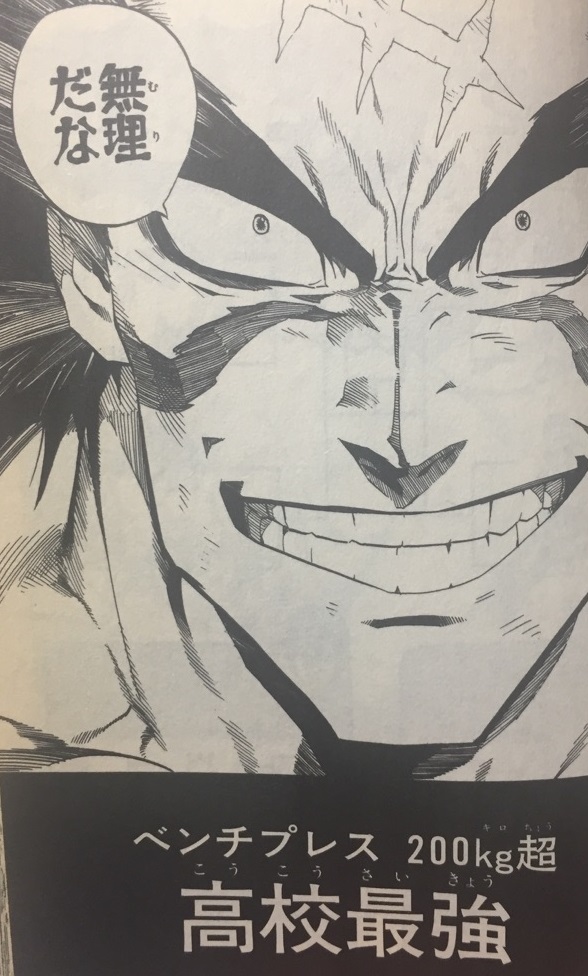 良くも悪くも「一撃の粉砕」が目立つので「力持ち」とはまた違う気がしなくもないサイタマ先生(ヒーロー試験での筋力測定やかなりの巨体の鳥怪人を殴る前に止めたりと、描写は無くはないが)