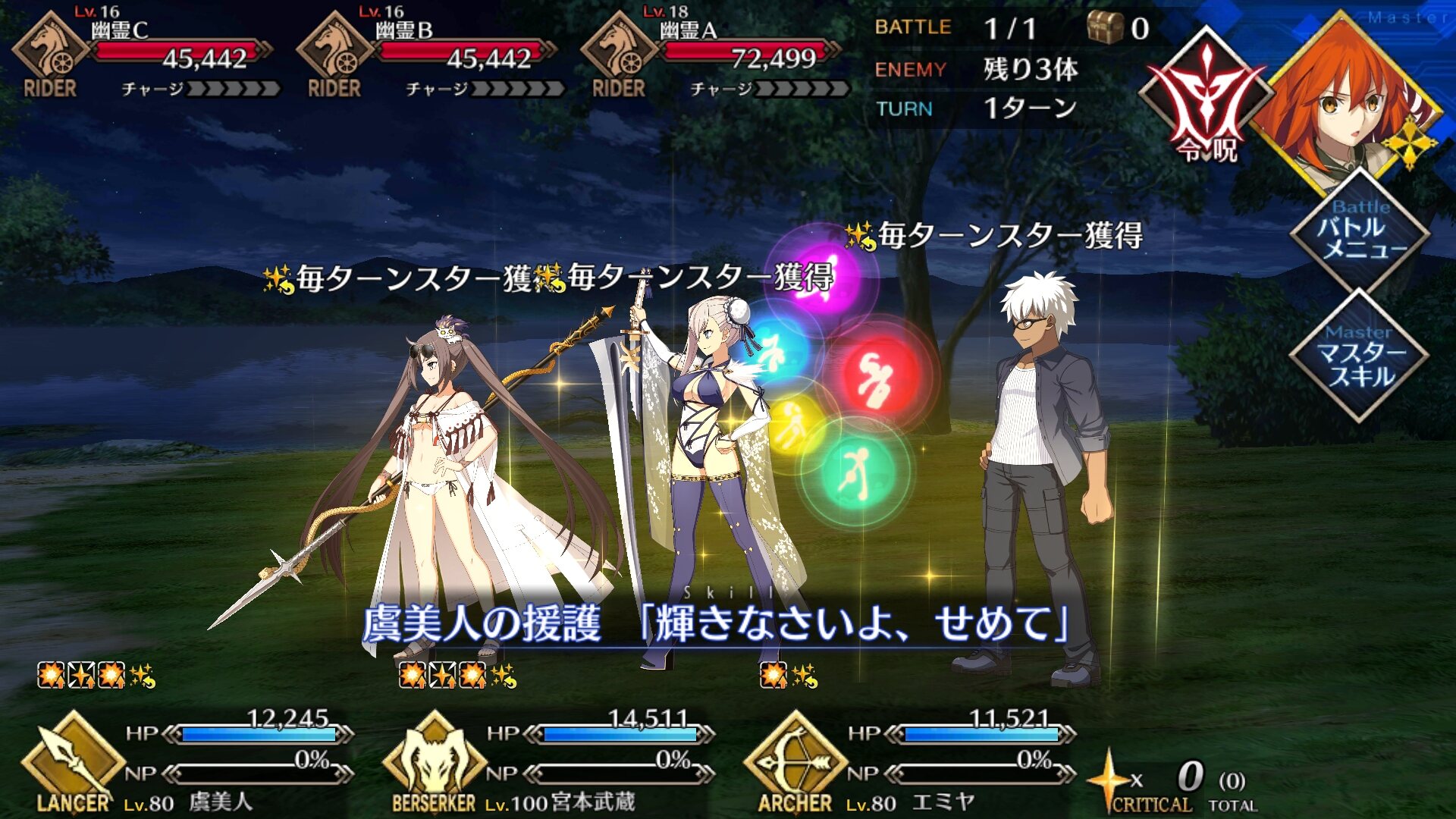 ルーラー、アヴェンジャー、ムーンキャンサー(少ないが)、フォーリナーでそれぞれ単独やってくれ…この前の闇鍋水着ガチャで出てきた水着マリーのビーチボールがクリティカル入りまくるとすごく気持ちいい……