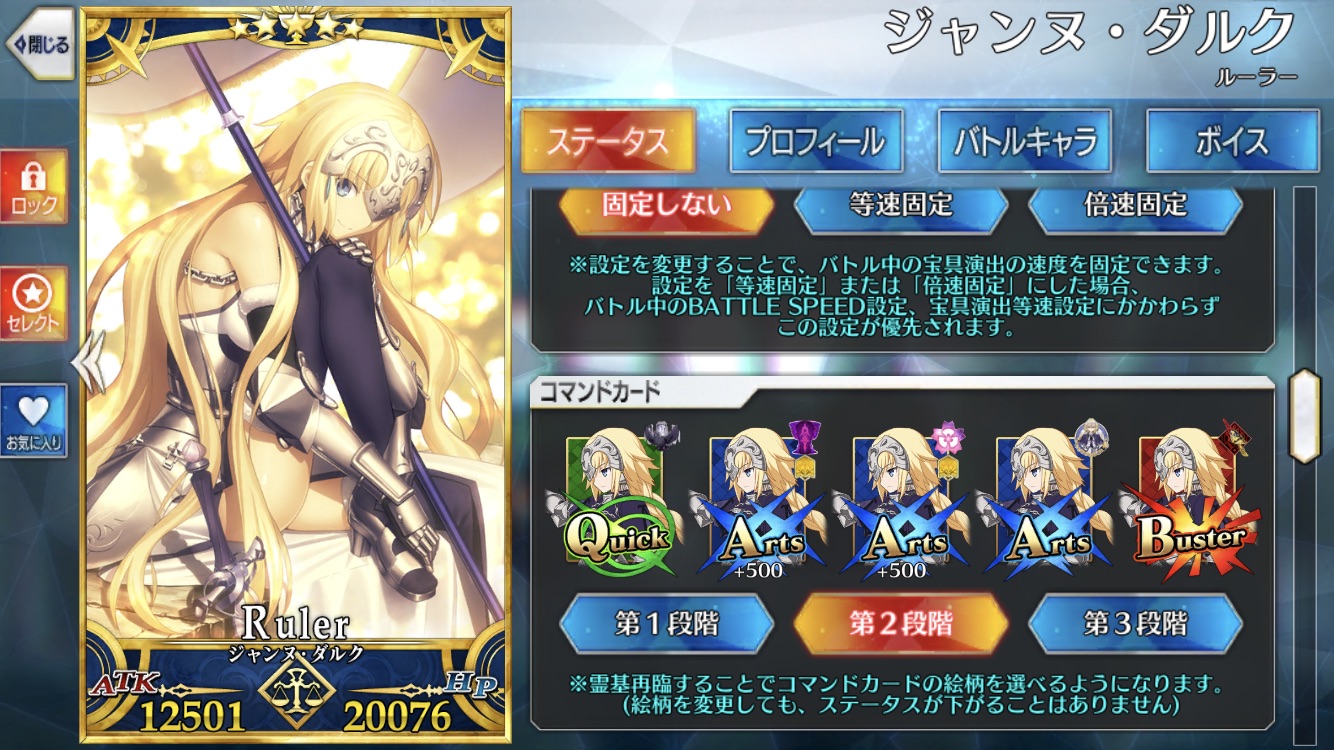 2人の宝具を回して回復しながら敵の宝具はマーリンのスキルやジャンヌの宝具が止める防御型のパーティー