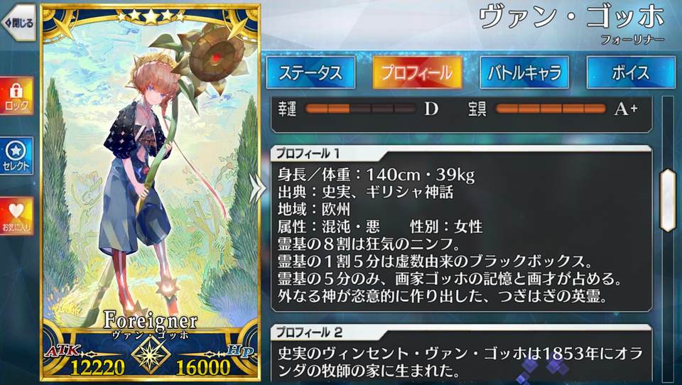 カード構成はキャスターではちょっと珍しいB2枚持ち Aパを組む際に火力の底上げができるから便利ね。AのNP効率は平凡 初期のキャスターはA性能を若干低めに設定される事が多かったから平凡なだけマシね。Qは低性能 使う価値は殆ど無いから無視して構わないわ