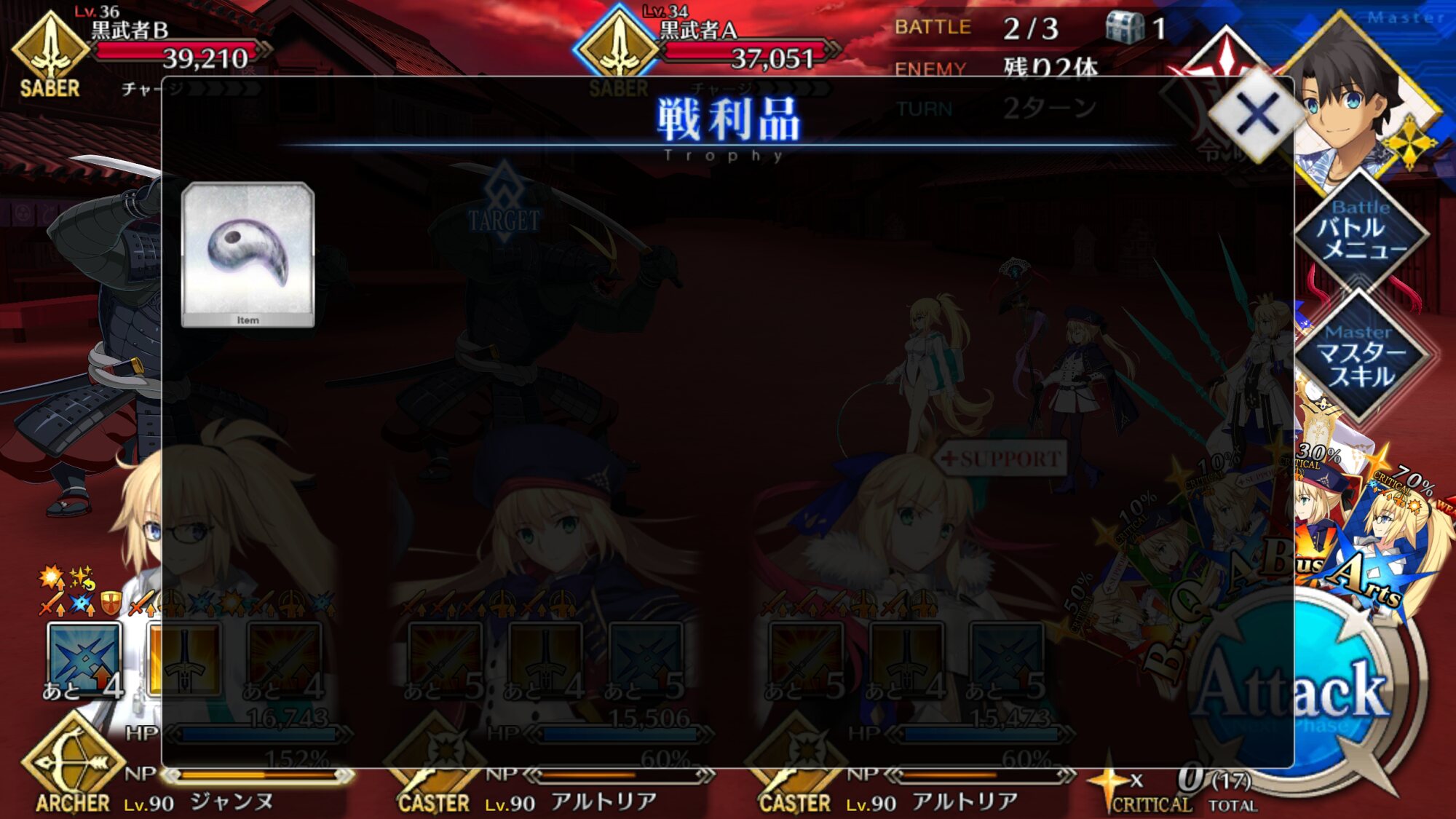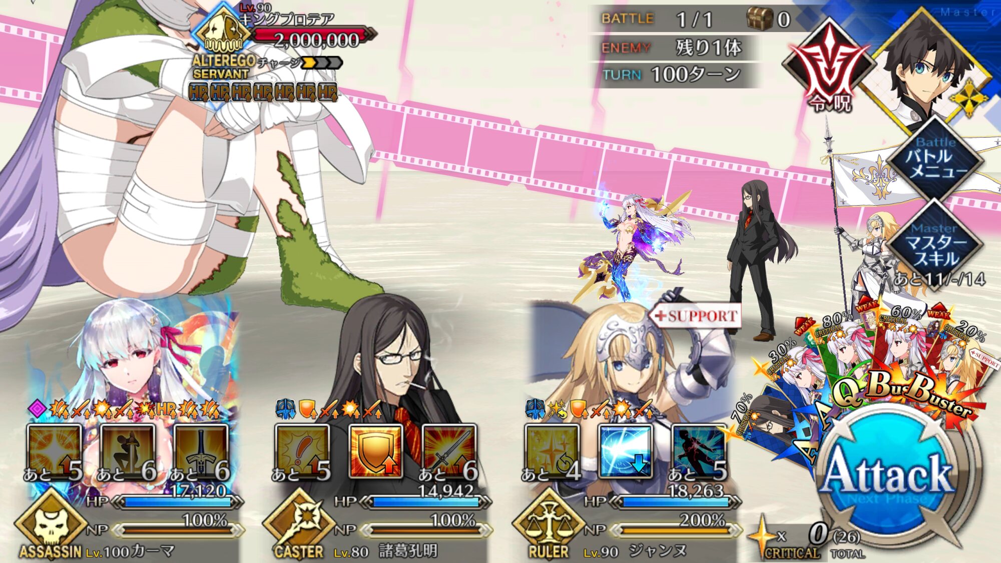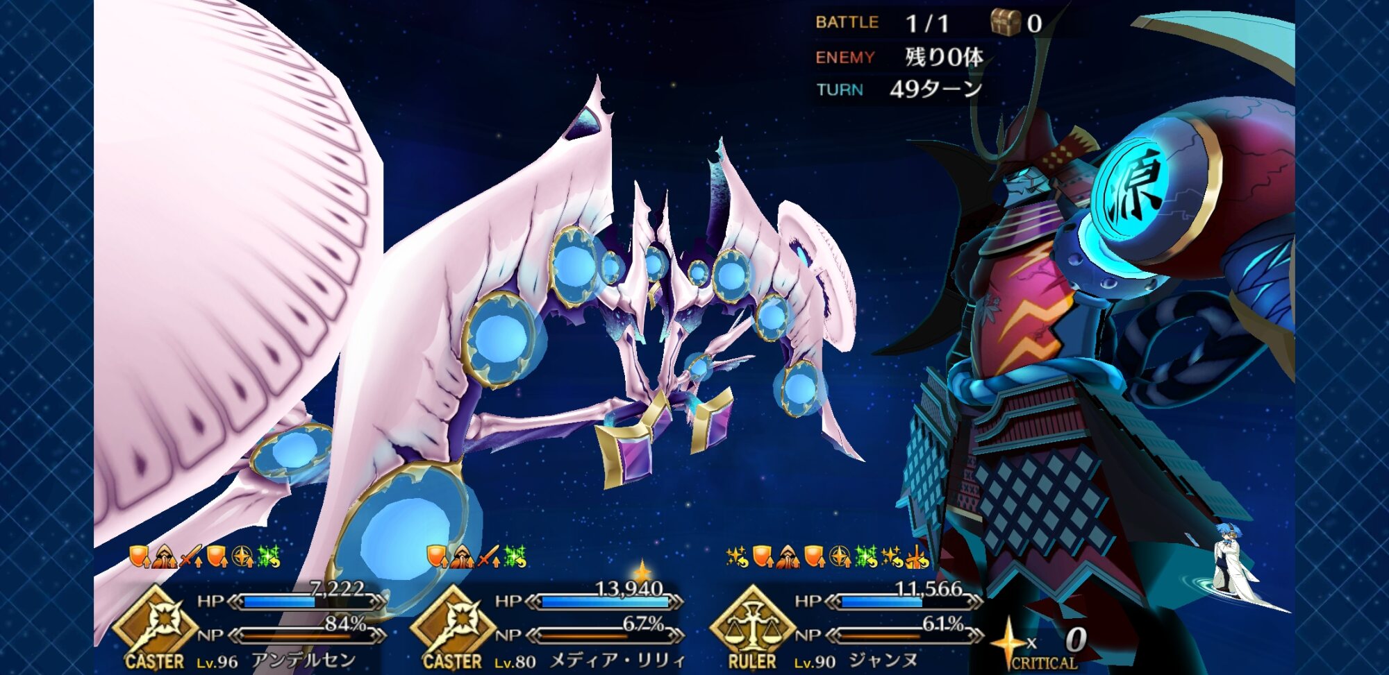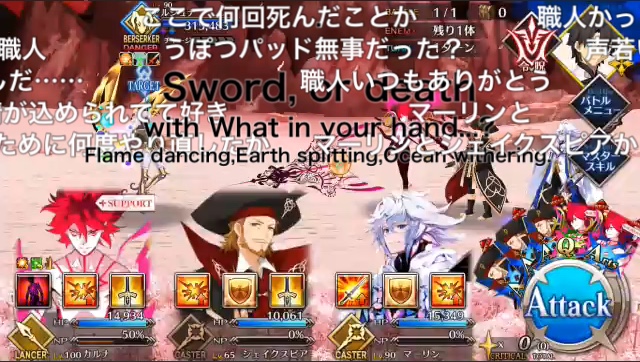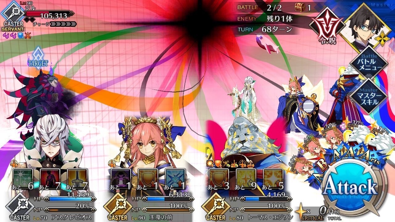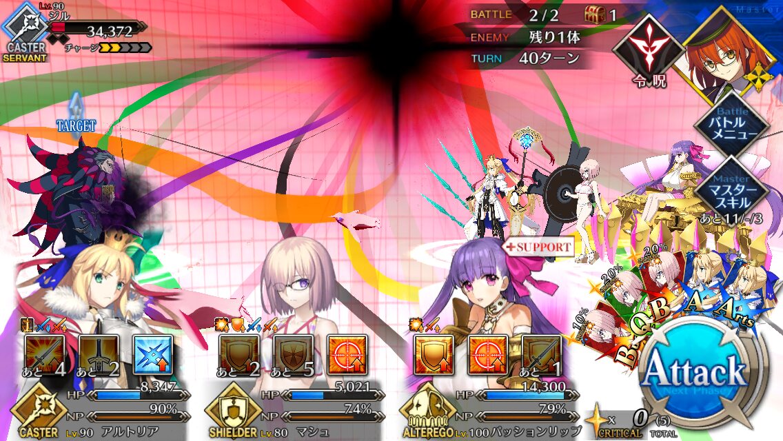 朕とマーリンとジャンヌで耐久してたときはいつまでも耐久できるけど相手も死なないみたいな感じになってたなぁ……