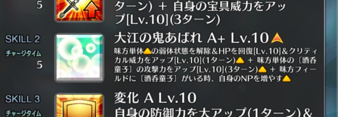 そして問題の「守護の獣」はQバフ…論外ね。まずジェロニモにQを使わせるメリットはほぼ無いわスキル上げは後回しでいいし、なんなら上げなくてもいいし強いて言うならスキルを上げなくていい分、素材を節約できるのがメリットね