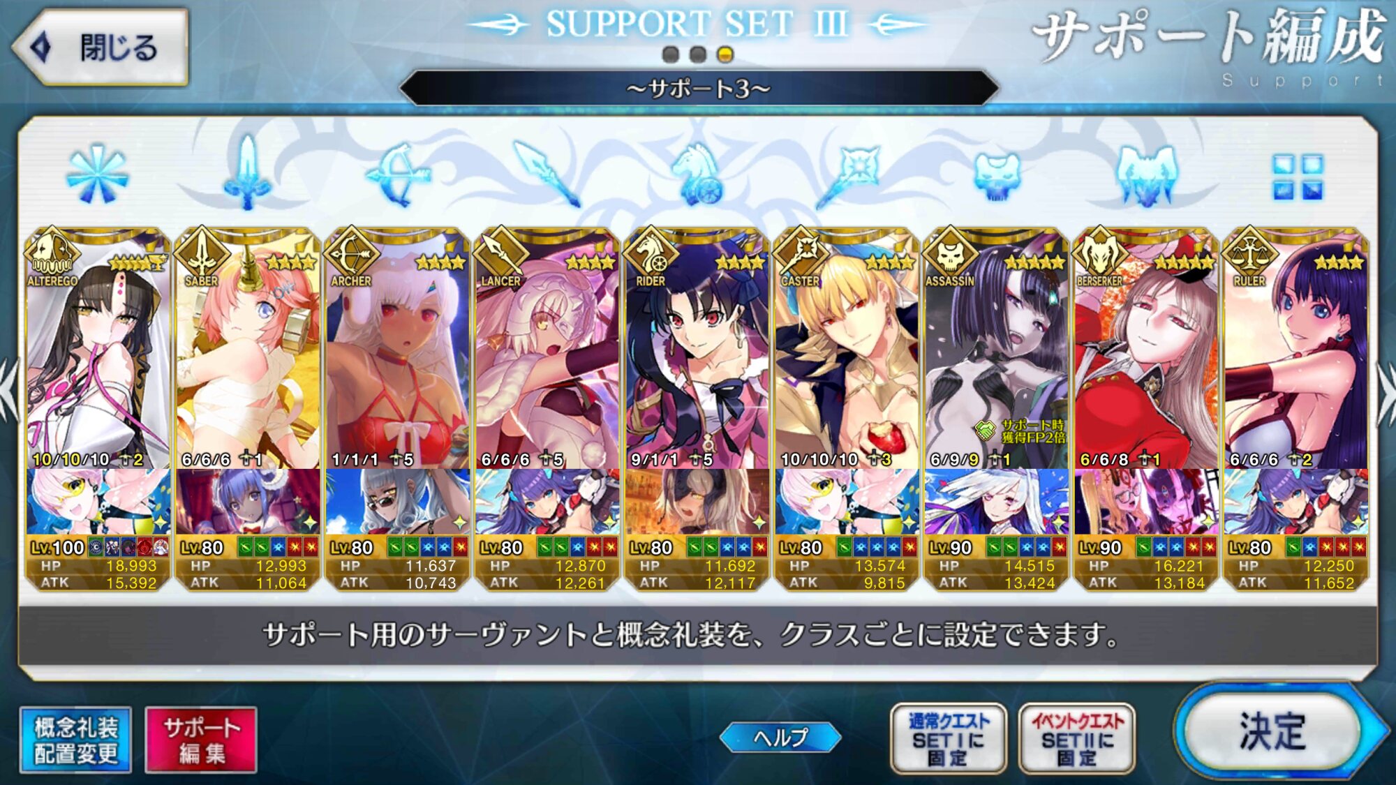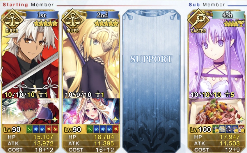 うちのいっぱい出てくる系高難易度のテンプレこれだけど、あとはフレからマーリン借りてきてでき得る限り無敵とリジェネで回しながら天草くんで殲滅