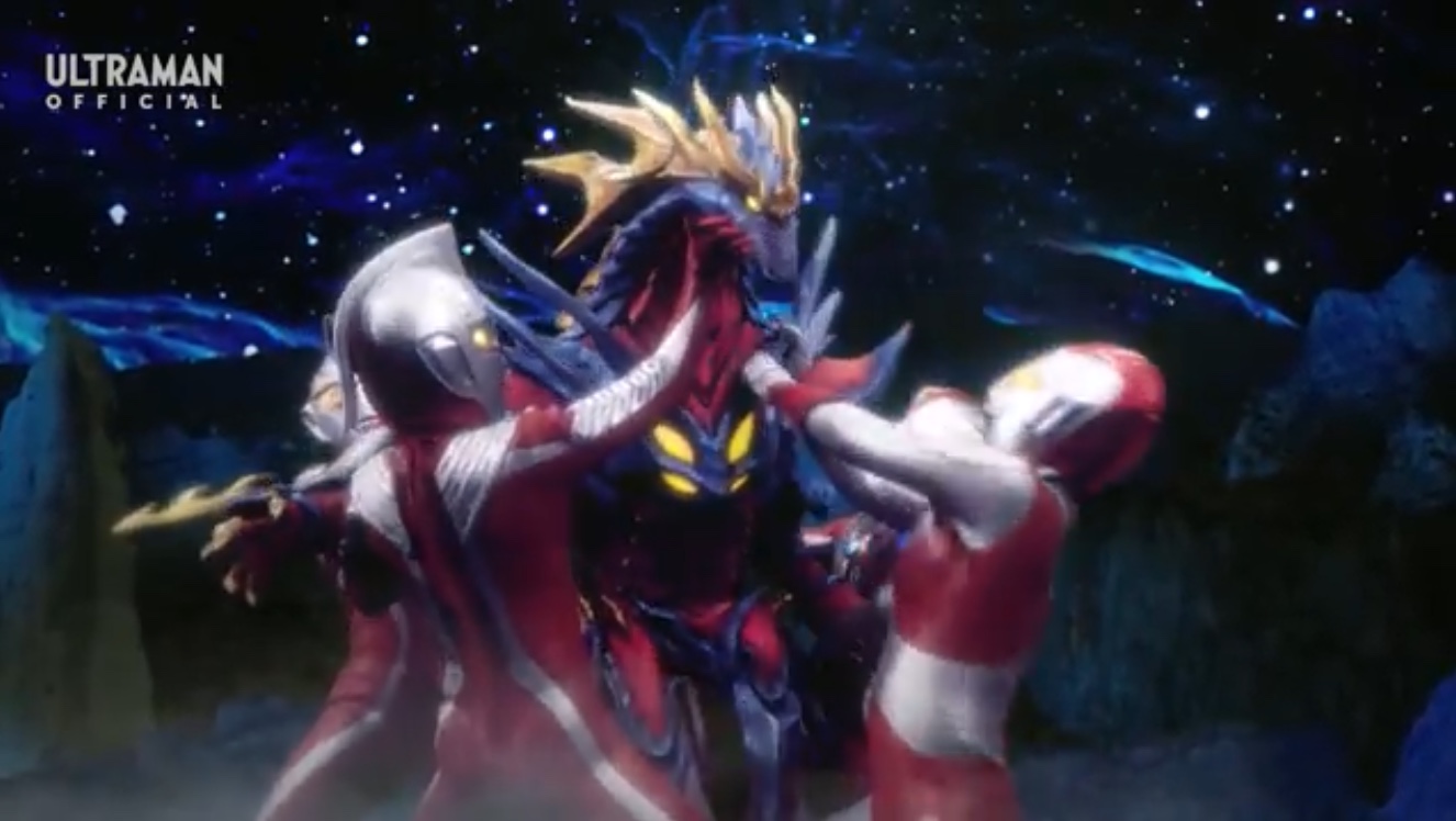 それを仮面として使って変身するのか、それをゴルゴーンの首を使った盾のように顔面武器として使うのか…?海外展開ウルトラマンの先輩でもあるグレートとパワードがリブットに稽古つけるの本当に良い