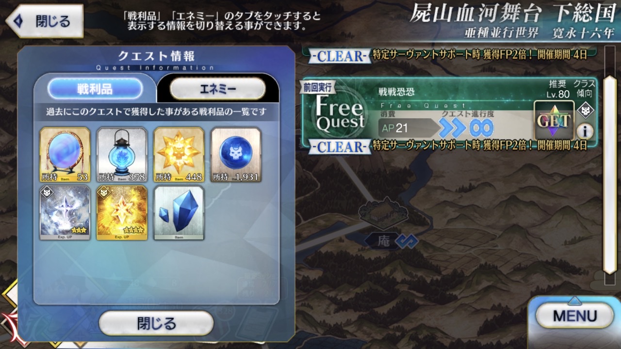 ライダーピースが10個くらいしかなかったんで修練場周回中