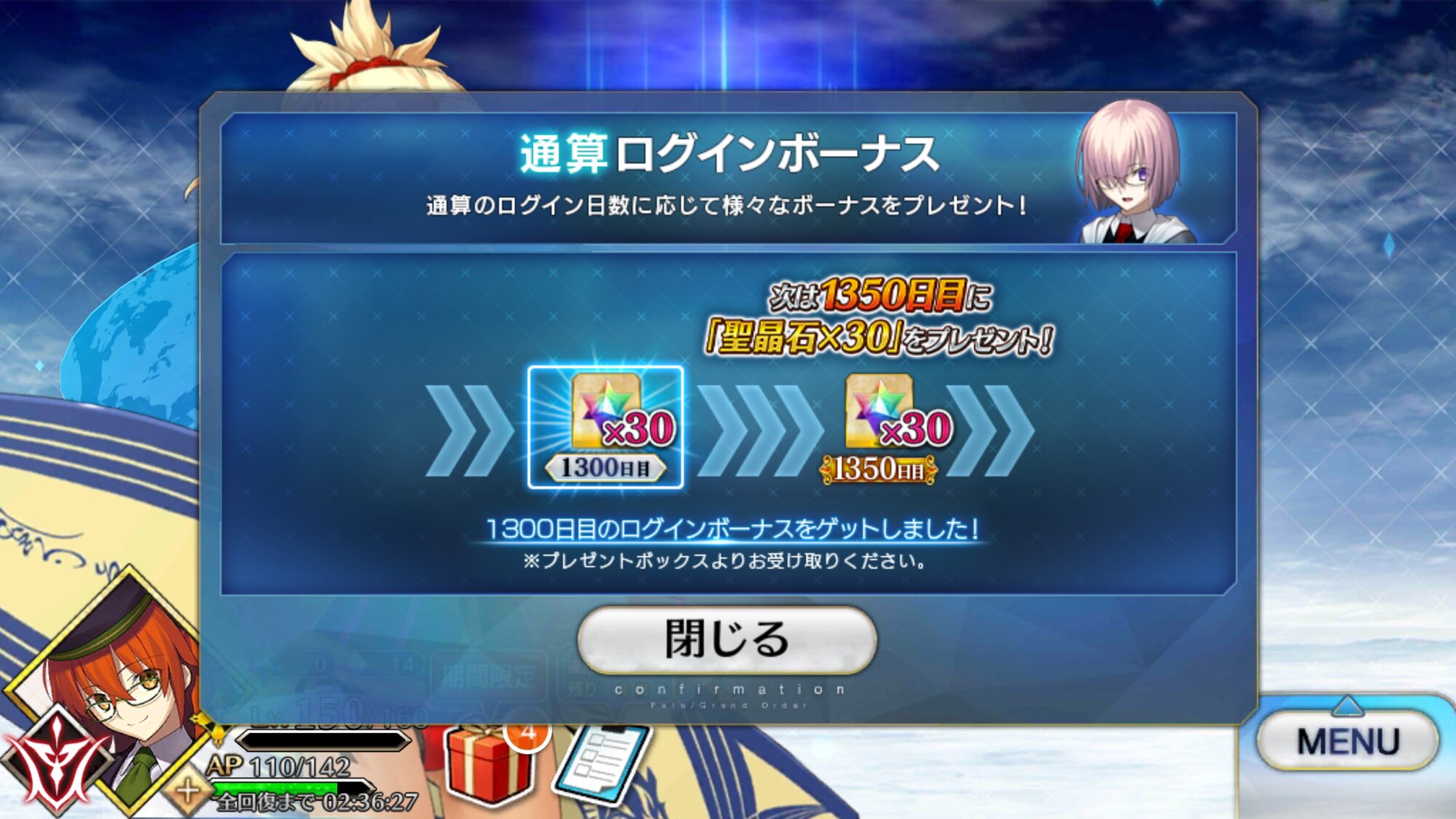 18日までだからログボ2週間分で石6個、呼符2枚