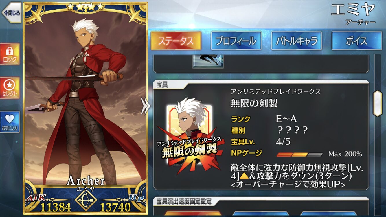 他の星4は精々2〜3なのに、1人だけ宝具4のエミヤ。